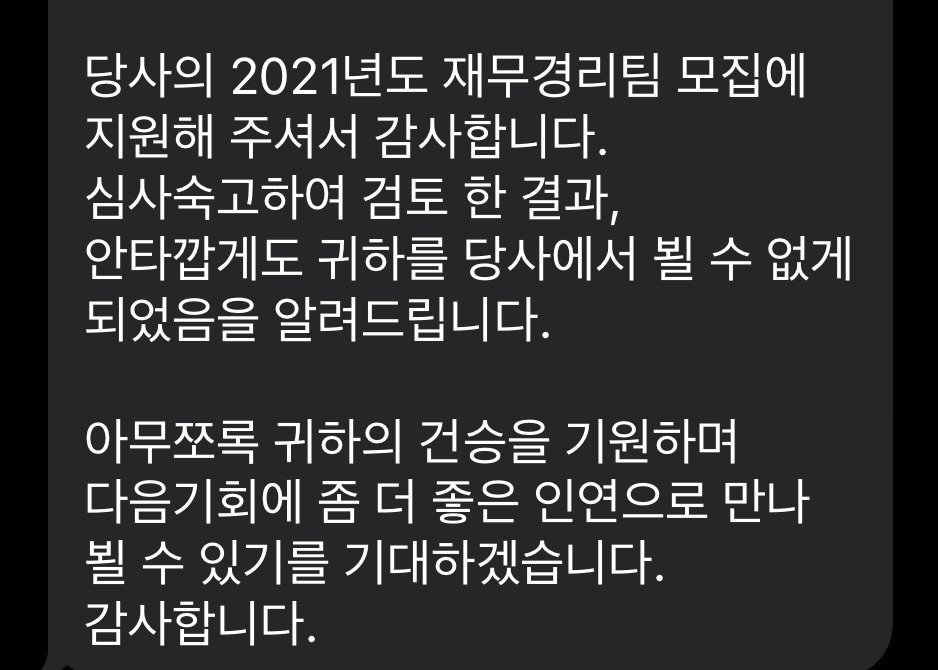 뭐 그 외에도 그들이 나의 경력과 위치상 거리 등등등을 생각하고 적합하지 않다고 생각했겠지만,