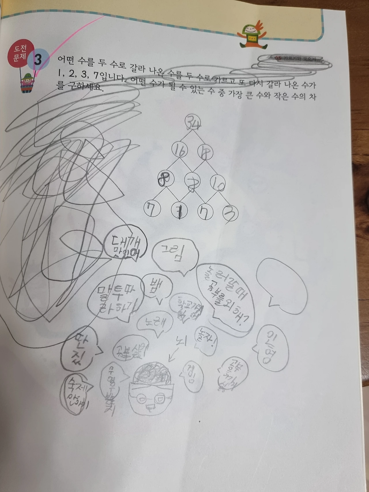문제집 틀린 문제를 고치는데 한참이 지나도 다 했단 말이 없길래 보니 제 머리 속에 들어있는 생각들을 모조리 꺼내놨다.