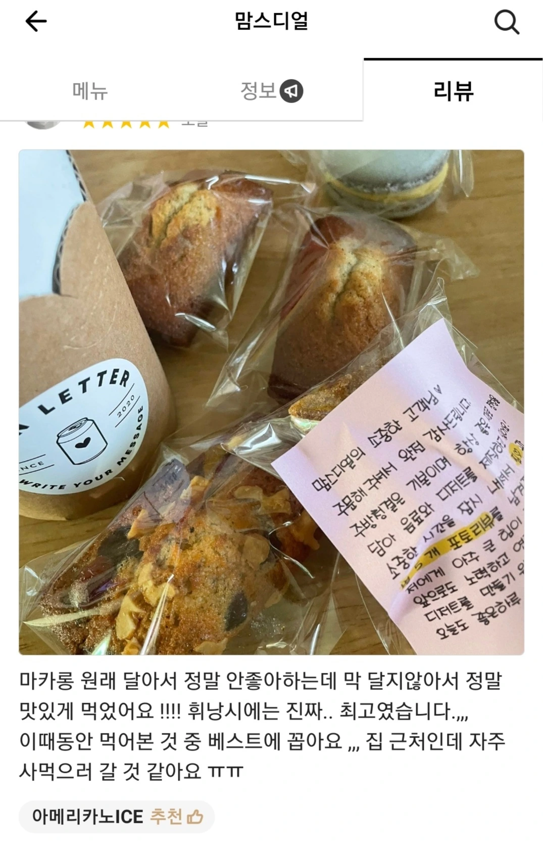 이미 맛은 검증됐다. 아직 홍보가 많이 안돼서 그렇지 우리 가게의 재방문율은 30%이다 (포인트 적립으로 확인할 수 있음) 그리고 지금 캔 레터의 경우도 벌써 10번째 재구매를 한 분도 있다. 그 정도로 맛은 보장이 되었다는 자부심이 있다.