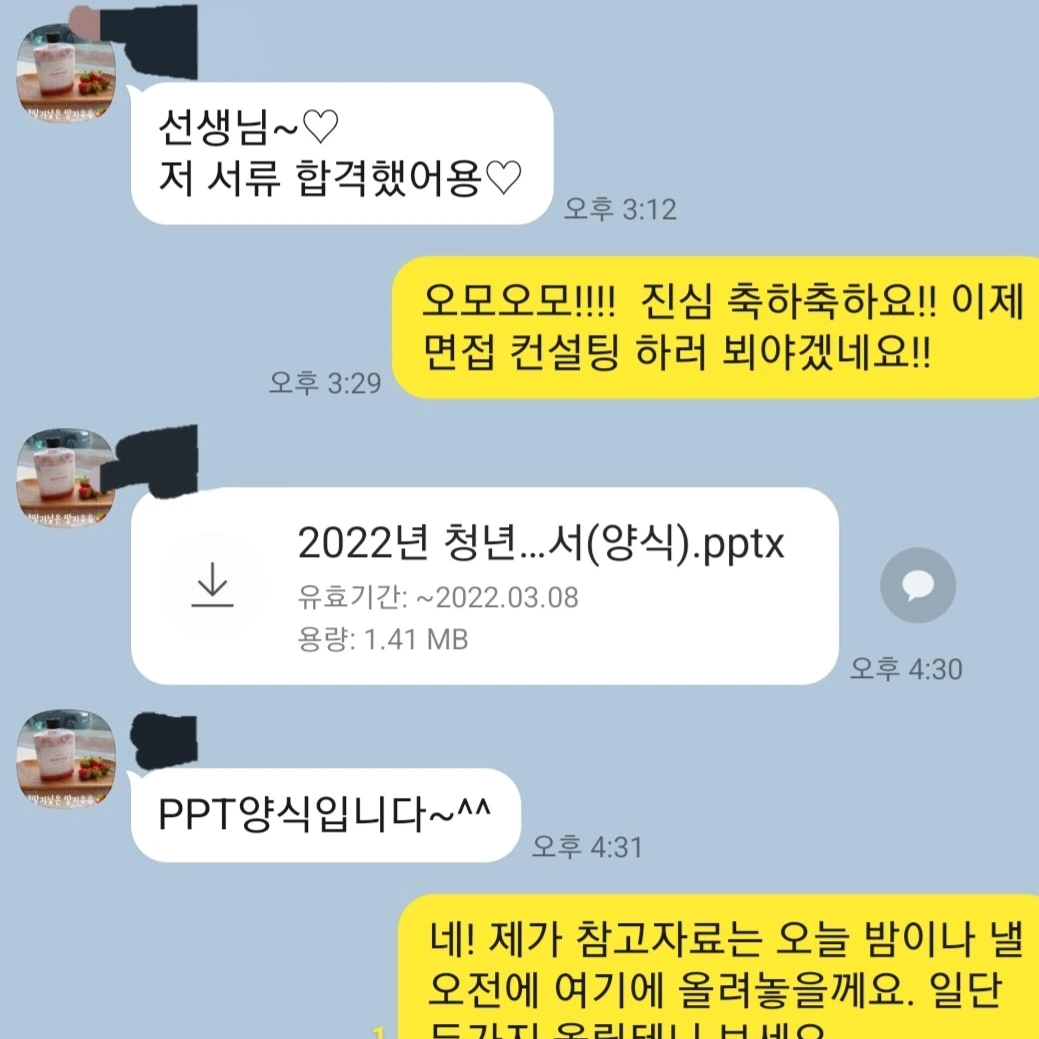 그러나 나는 다 퍼주는 여자!! 울 수강생 들 건 무료로 봐주고 수정해야 할 부분 다 짚어준다. 대필은 안되는 거니까 최대한 이해하기 쉽게 설명해준다. 그래도 이게 맞는지 모르겠다고 물어보면 그냥 서류를 보내달라 해서 더 자세하게 컨설팅을 해주었다