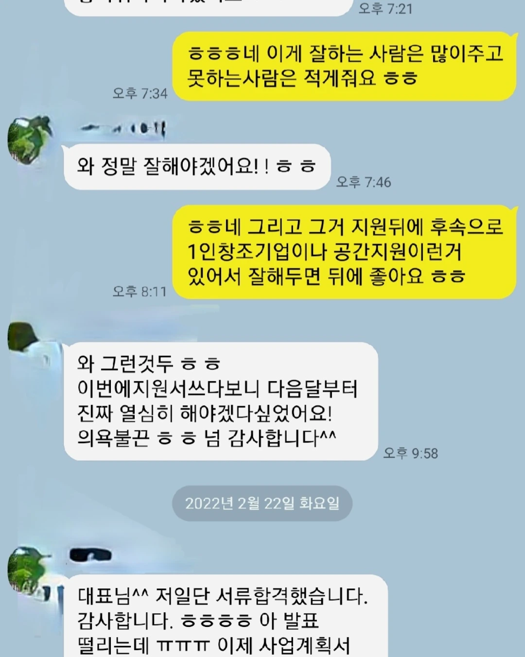 그래서 내가 볼 때 정부지원의 서류합격은 가능성이 있는 아이템을 보는 것이고 면접 합격은 그 가능성을 실현할 수 있다는 믿음을 주는 사람을 보는 것 같다.