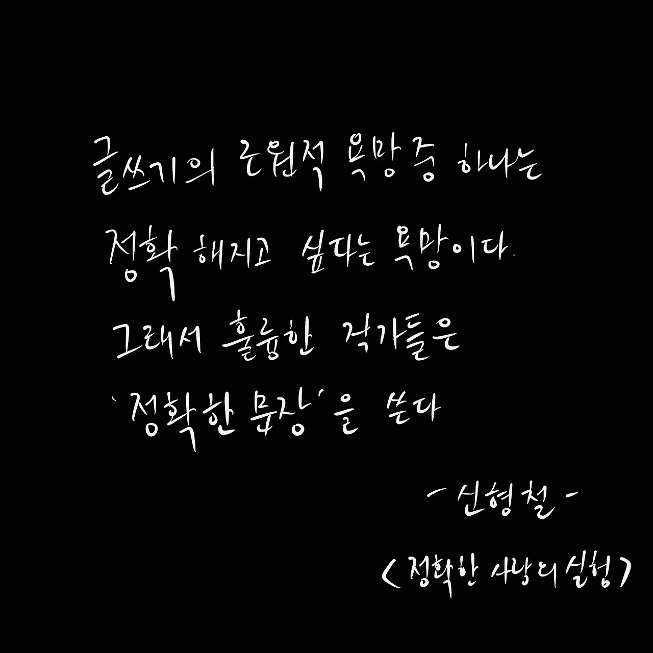 “글쓰기의 근원적 욕망 중 하나는 정확해지고 싶다는 욕망이다. 그래서 훌륭한 작가들은 정확한 문장을 쓴다.” <정확한 사랑의 실천> 신형철