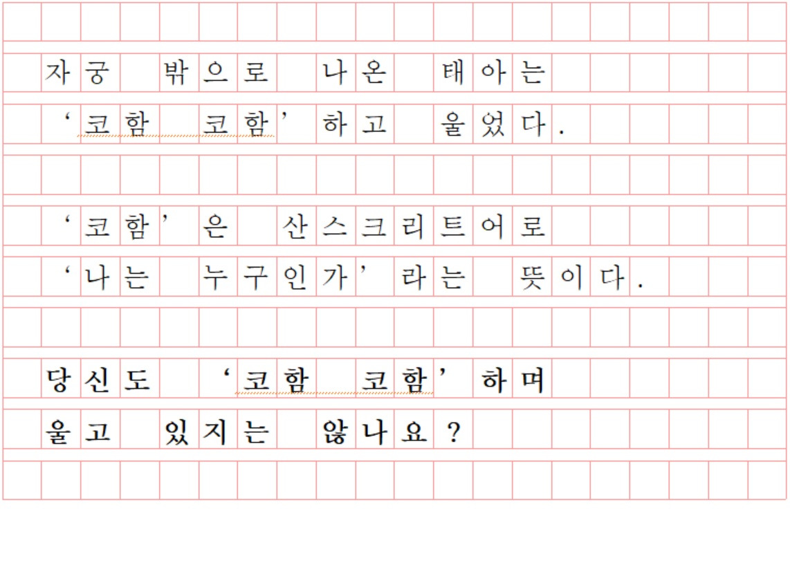 사실 잘 알아들은 것처럼 적었지만, 집에 와서 선생님의 이야기를 검색해보는 나는 마치 “거침없이 하이킥”의 정일우와 같았다. 회자정리라는 말로 이별을 고한 우등생 여자 친구의 말을 이해하지 못해 ‘회자적리, 혜자적리, 회자종니’ 등등의 말로 검색을 해보며 답답해했던 일우를 기억하는가. (그렇다면 여러분의 나이...) 나 역시 집에 돌아와 우함이었나 오함? 소함? 구함? 온갖 단어들로 구글링 끝에 소함과 코함이라는 사실을 알아냈으니 말이다.