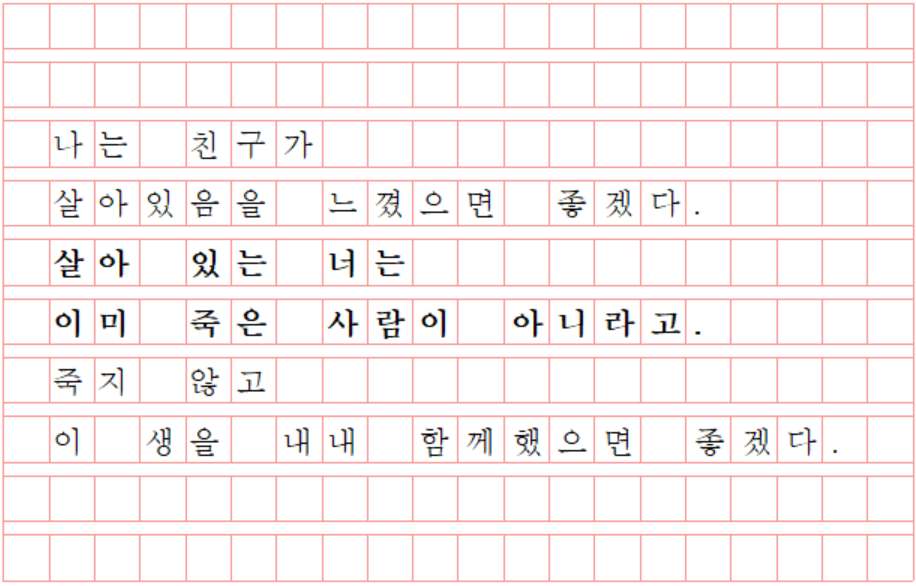 어쩌면 난 친구가 살아야 할 이유, 죽어선 안 될 이유 같은 걸 찾고 있었던 게 아닐까. 이러니 죽지 마. 붙잡을 이유가, 친구를 설득할 이유가 필요했던 것도 같다. 가족, 친구, 사랑, 일 모두 이유가 될 수도 아닐 수도 있었지만 그게 이유가 되면 친구는 살 수 있을까. 어제 새벽 친구에게 겨우 보낸 한 마디가 생각났다. 고르고 고르다 전한 한 마디는 “죽을 생각 말고 살아”였다. 말의 의미를 전하고 싶은 마음도 있었지만, 썼다가 지우고 또 쓰고 다시 지워낸 문장엔 “죽을 생각 말고 살아”만 남아 있었다. 그리고 오늘 부끄럽게도 나의 살아있음을 느끼며 어제의 그 한 마디를 또 곱씹어본다. 마음 그대로 전해지기를.