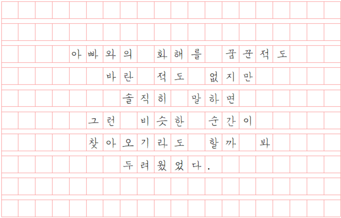 GOD의 팬도 아닌데 알 수 없는 알고리즘으로 컴백했던 지오디 영상이 자꾸 떴다. “어려서부터 우리 집은 가난했었고 남들 다하는 외식 몇 번 한 적이 없었고”로 시작되는 지난 노래가 이제와 귀에 꽂힌 건 정말이지 남들 다하는 외식 몇 번 한 적이 없었단 사실을 깨닫고서였다. 그렇다, 어려서부터 우리 집은 가난했었다. 그래서 나는 그 가난을 참 싫어했다. 그리고 그 가난의 씨앗이었던 아빠를 나는 참 미워했다.