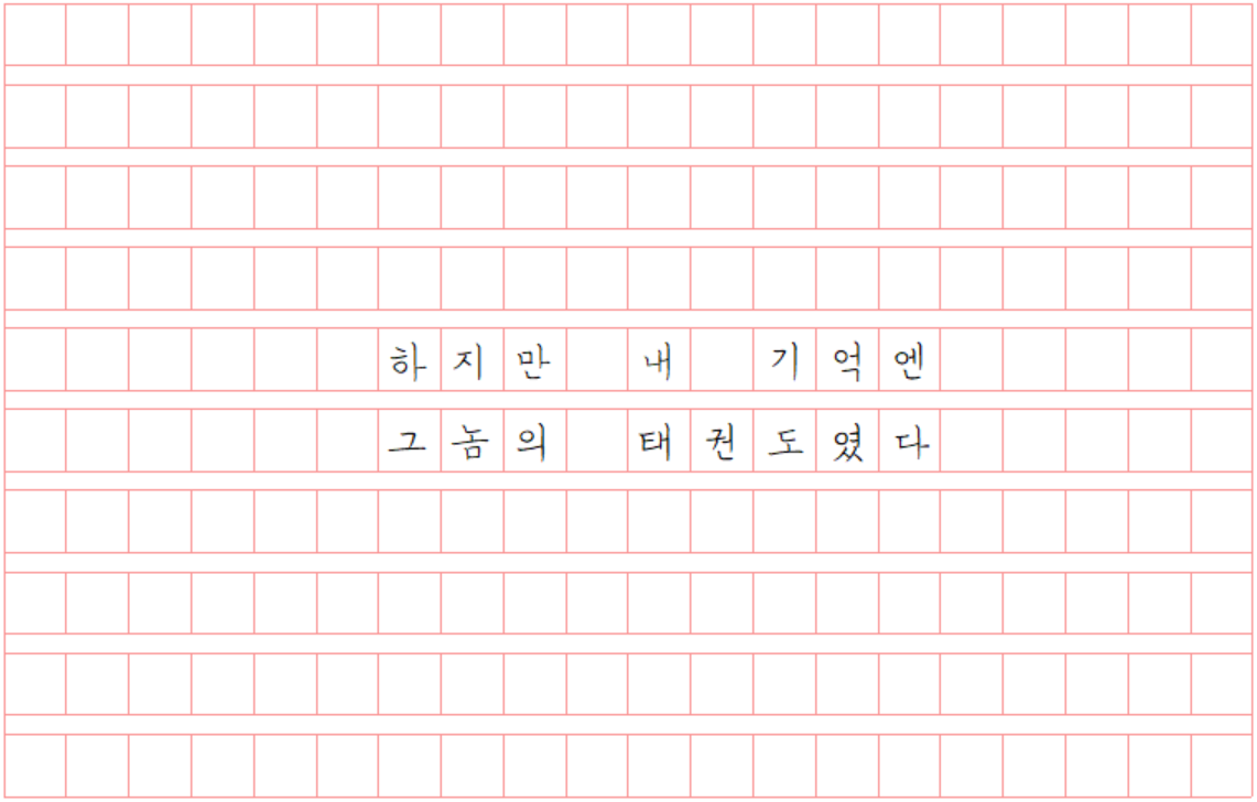 인간의 상상이란 참 신비한 영역이라 보지도 못했던 장면이 머릿속에 강하게 떠오를 때가 있다. 대체로 그 장면은 빚쟁이 말고는 아무도 오지 않는 텅 빈 태권도장에서 혼자 수련했을 그의 모습이다. 어쩌면 아빠가 놓지 못했던 건 태권도장의 자리, 태권도 관장이란 직함, 도장을 가득 채우는 아이들 그런 게 아니라 그저 수련이었을지도 모른다는 생각이 요즘에서야 든다.