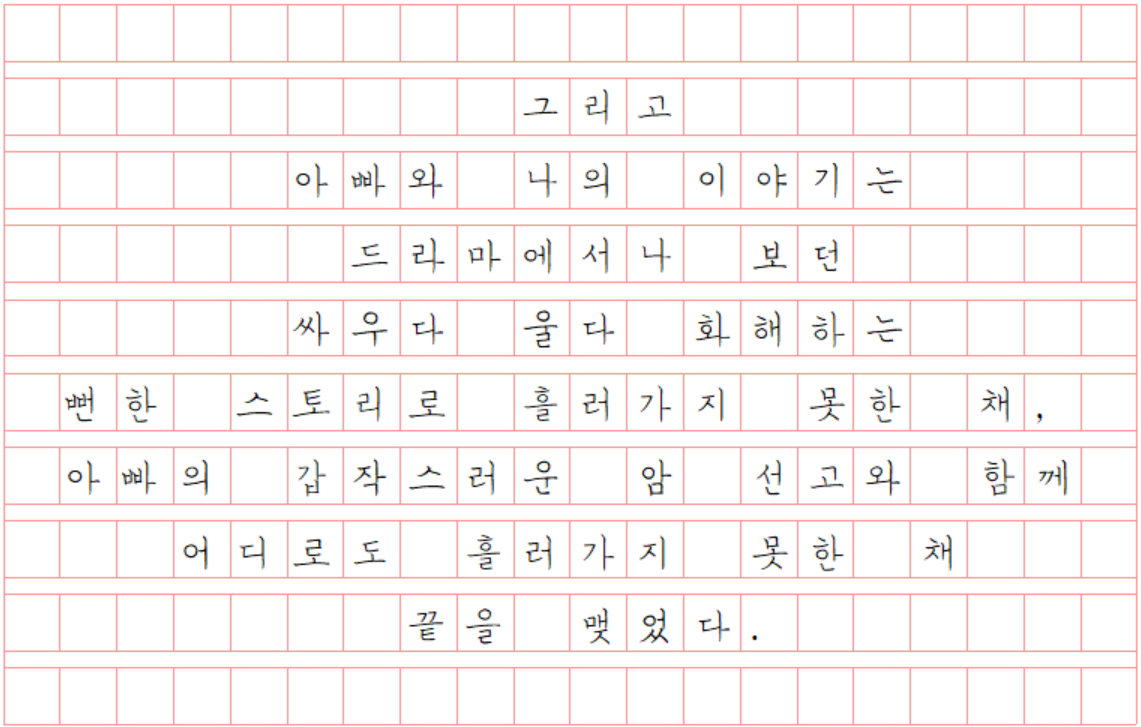 물론 가난만이 그를 미워한 이유는 아니었지만 나는 아빠와 자주 싸웠고, 멀어졌고, 성인이 된 후로는 인연을 끊고 살았다.