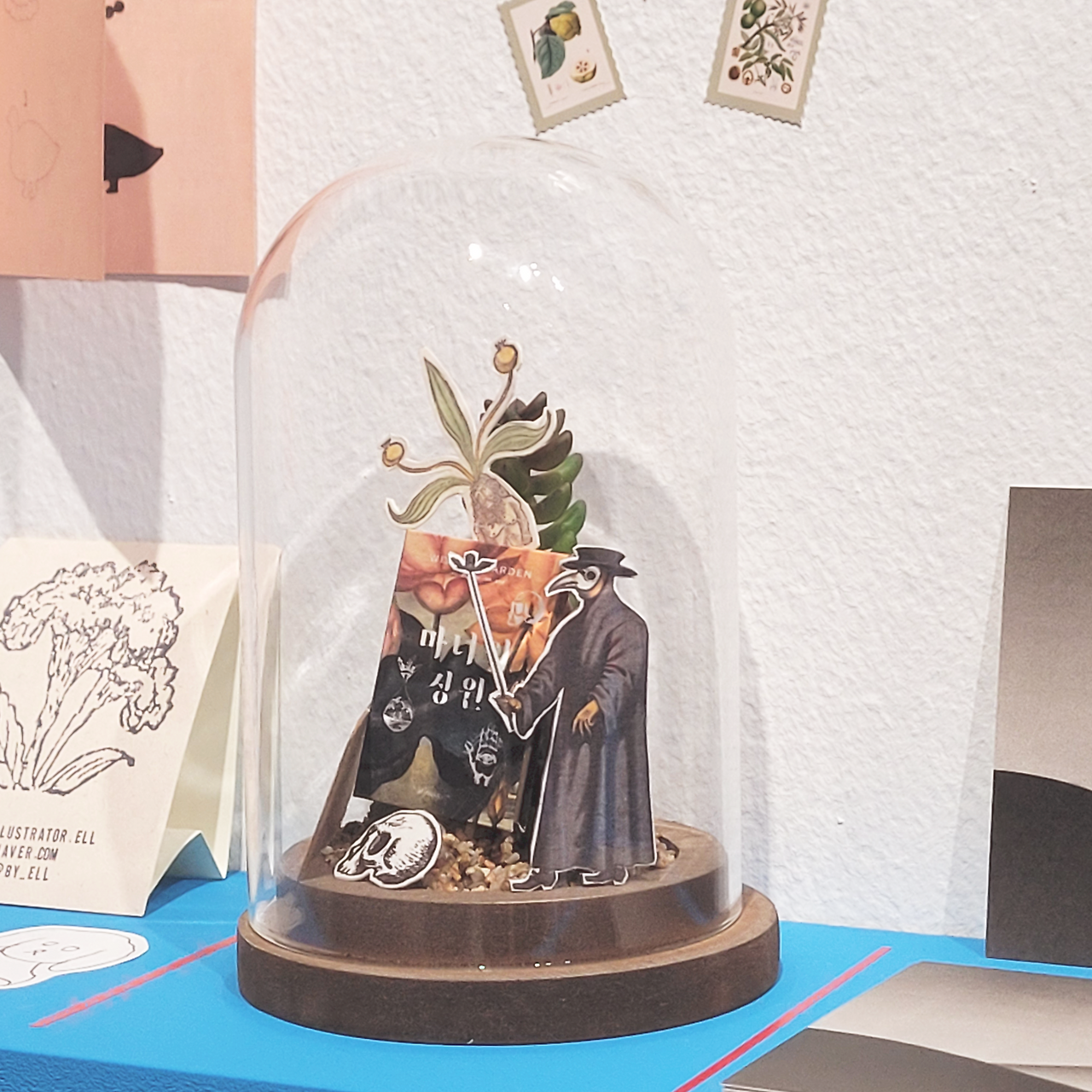 여러 극복할 점이 많았긴 했지만, 그래도 북페어는 여전히 북페어였다. UE 2023은 특히 독립출판물과 아트북을 함께 다루는 행사여서 읽을 것만큼 ‘볼 것’이 정말 많았다. 줄글보다 시각적인 부분에 더 큰 비중을 둔 아트북들이 큰 비중을 차지하고 있어서, 부스마다 구경할 것들 천지였다. 북페어라기에는 그림들이 워낙 많아서, 북페어보다는 오히려 일러스트레이션페어와 북페어 중간 정도 되는 행사처럼 느껴졌다. (실제로 일레스트레이션만 전문으로 하는 작가님들도 꽤 보였다.)