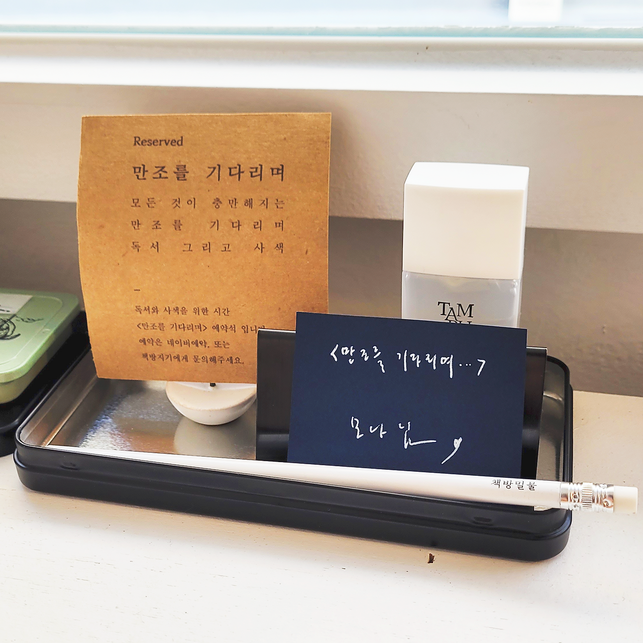 : 책방에는 쓰는 마음을 촉발시키는 아주 사소하지만, 효과적인 도구들이 마련되어 있다. 이를테면, 따뜻한 차 한 잔, 깎지 않은 매끈한 새 연필, 정갈한 편지지 같은 것들. 읽고 쓰는 사람이 운영하는 서점은 읽고 쓰는 마음을 움직이는 방법을 정확히 알고 있다.