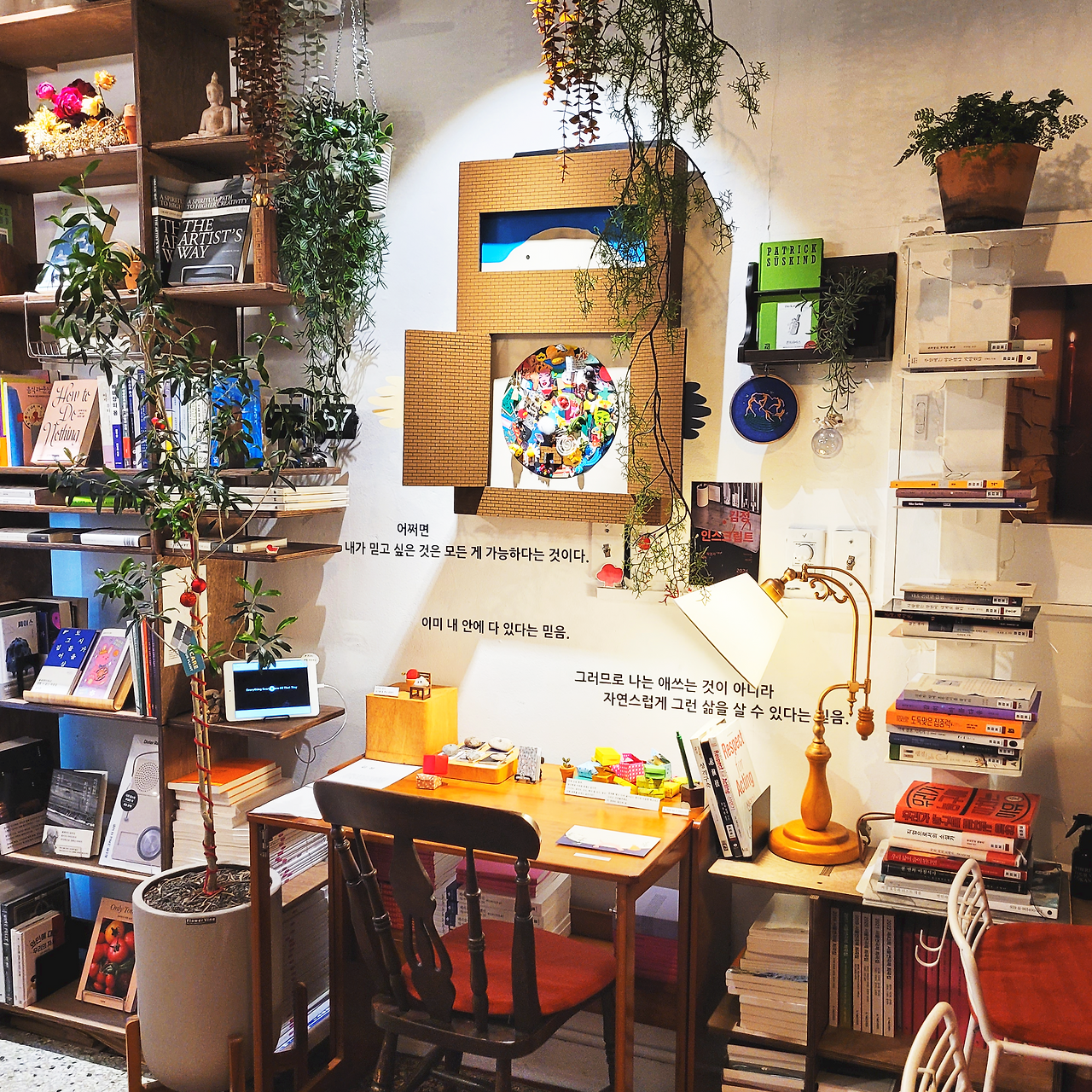 : 서점으로 운영되지 않는 시간에는 공간을 ‘작업실(공유 서재)’로 사용할 수 있다. 또한 음료도 판매하는데, 특히 ‘토마토 에이드’가 상당히 훌륭하니 꼭 한 번 맛보시길 바란다.