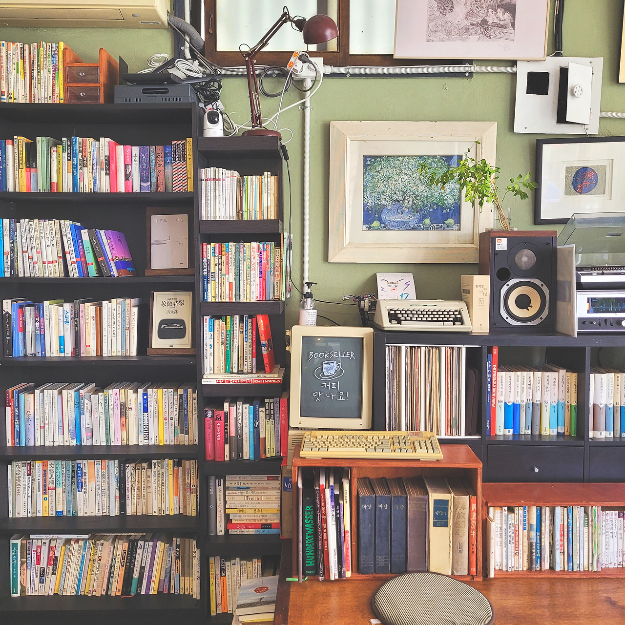 존재하는 것만으로 설득되는 공간이 있다. 무엇 하나 강요하지 않는데도 마치 그런 것처럼 생각하게 되는 곳. 트렌디하다고 소개하지 않는데도 어느새 유행의 선두에 서 있고, 정겹다 표현하지 않는데 저절로 따스함을 느끼게 되는 곳. ‘북셀러’는 그런 서점이다. 밀도 있게 촘촘한 공기가 공간 안을 가득 채우고 있어서, 책방은 입구에 발을 디디는 순간부터 새로운 세계로 이송된 기분이다. 바람에 흩날리는 얇은 커튼, 그 사이로 흘러드는 한낮의 햇살, 세월의 흔적이 고스란히 묻어나는 LP와 선풍기, 노랗게 색이 바랜 모니터와 타자기, 한때 부유함의 상징이었던 뻐꾸기 벽시계까지. 서점을 이루고 있는 세세한 요소들은 서로에게 덧입혀져 공간만의 독창적인 노스텔지어를 만든다. 그곳의 노스텔지어는 ‘우리가 경험해 본 적 없는 시간’이다. 한 번도 도달한 적 없지만, 생각할수록 아련해지는 과거의 과거. ‘그리움’이라는 단어에도 원형이 존재한다면 바로 그것일 것만 같은, 오래된 사진첩 속 빛바랜 사진만이 간직하는 닿을 수 없는 시간의 감성.