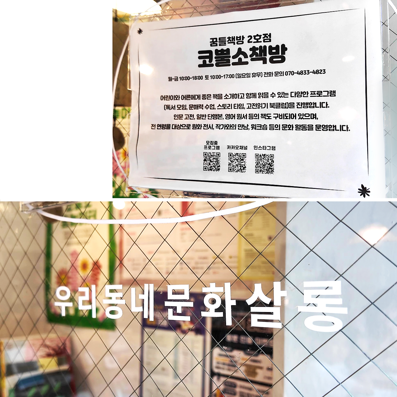 그림책과 아동 도서로 유명한 꿈틀 책방 2호점이다. 1호점에 이어 2호점에서도 아동 도서와 그림책을 다양하게 취급하며, 소설이나 인문, 예술 중심의 어른 책도 찾아볼 수 있다. 그림책 원화 전시도 종종 열리며, 어린이를 위한 동화책 읽기 수업도 진행된다고 한다.