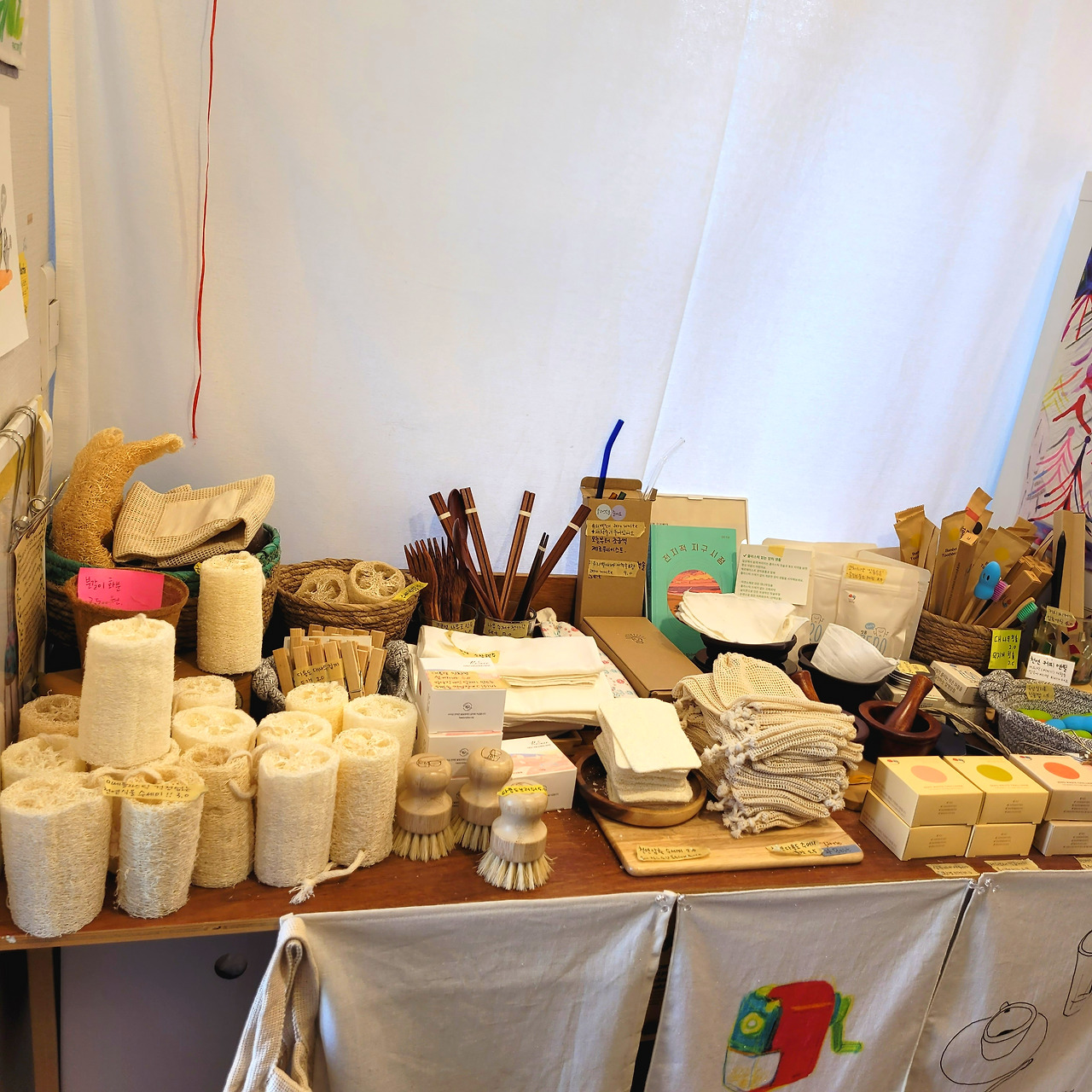 책방의 이러한 성격은 소품들에도 녹아들어 있었다. 대표적인 것이 업사이클링 및 친환경 제품들. 공간을 가로막던 문을 폐기하는 대신, 문짝 책방으로 탈바꿈시킨 서점답게 책방의 요소요소에서는 환경을 고려하는 물건들이 눈에 띄었다. 악세사리를 판매하는 곳에는 씨글라스로 만든 목걸이와 귀걸이들이 있었으며, 책방 입구에는 친환경 제품들만 모아서 판매하는 구역도 따로 있었다. 천연 수세미와 대나무 칫솔, 설거지바, 광목 주머니, 유리로 만든 빨대 등 환경을 생각하는 제품들은 종류도 다양했다.