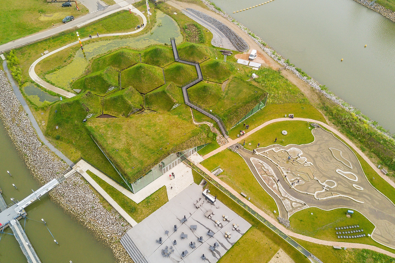 네덜란드 마스강과 바스강이 합쳐지는 곳에 위치한 비스보쉬 뮤지엄아일랜드는 섬 전체가 습지로 이루어진 하나의 국립공원이에요. 지난 2015년 이곳의 뮤지엄을 네덜란드 디자인 회사가 공원의 생태적 개념을 접목시켜 친환경뮤지엄으로 새롭게 단장했다고 해요. 강과 강사이의 습지에 자리한 뮤지엄인만큼 주변과 조화를 이루기 위해 고민한 흔적이 보이는 것 같지 않나요?