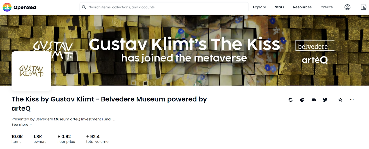 전 세계 뮤지엄 또한 너 나 할 것 없이 NFT에 관심을 보이고 있어요. 러시아의 에르미타주 뮤지엄(The State Hermitage Museum)은 소장품인 레오나르도 다빈치(Leonardo da Vinci)의 <마돈나 리타(Madonna Litta)> 등의 작품을 NFT화해 판매한 바 있어요. 오스트리아의 벨베데레 뮤지엄(Belvedere Museum)은 2021년, 밸런타인데이를 맞이해 구스타프 클림트의 <키스(Kiss)>를 10,000개의 NFT 조각으로 한정 발매했죠.