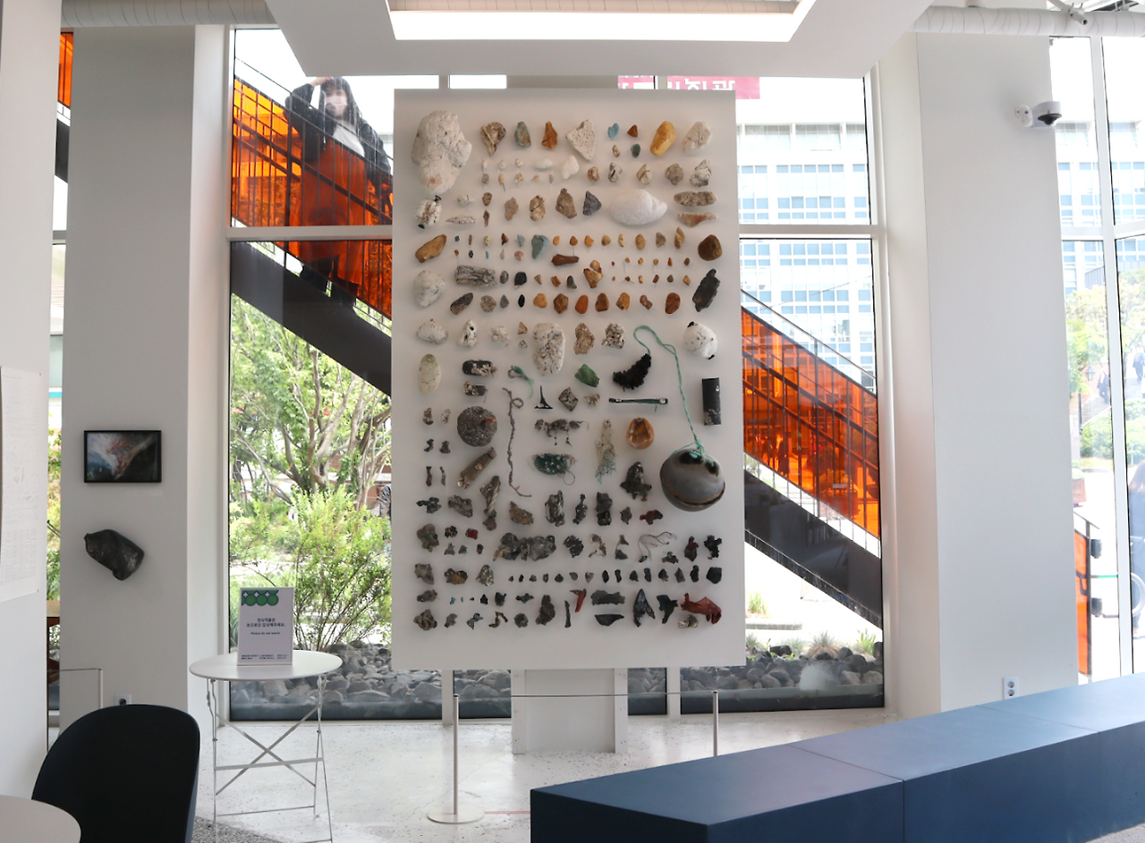 저도 계속 발견하거든요. 이 덩어리를 가만히 보니까 플라스틱 스피어라는 생태계가 너무 흥미로워 보이는 거예요. 그러면 사진도 찍어보고 그 사진을 SNS에 올리는 게 더 효과적일지, 인화해서 전시를 해보는 형태가 더 나을지 이런 고민도 해보고요. 이러한 물질이 존재한다는 사실 자체를 보여주려면 표본의 형식이 제일 쉽고 직관적일 것 같은데 그렇다면 이를 어떤 프레임 안에 놓는 것이 더 나을지 혹은 그냥 설치의 형식이 나을지, 보여준다면 어떤 정보가 같이 있을 때 효과적일지 고민을 해요. 그러면서 뉴 락의 발견 지역이랑 발견 시기는 꼭 같이 넣으려고 해요. 이게 실제로 발견이 된 것이라는 걸 더 명확하게 하기 위해서죠. 이런 순서로 제가 보여주고 싶은 것을 어떻게 하면 사람들에게 가장 재미있고 효과적으로 보여줄 수 있을지에 대한 고민이 뻗어나가곤 해요.