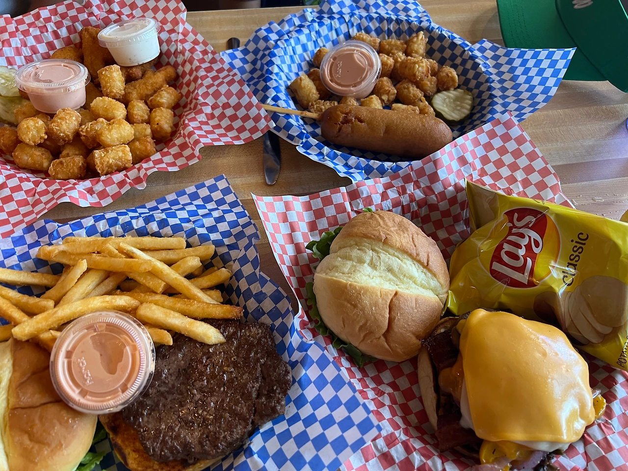 이런 로컬식당의 햄버거는 대체로 후회가 없다. 쉑쉑버거도 인 앤 아웃버거도 파이브 가이즈도 이름값에 비해 대단히 맛있다는 생각을 하진 못했다. 여행을 하다보면 프랜차이즈가 아닌 이런 숨겨진 햄버거집이 맛집인 경우가 많다. 나랑 남편은 기본 10달러짜리 기본햄버거랑 제일 비싼 15불짜리 양키버거, 두 개를 시켜서 나눠먹기로 했다.