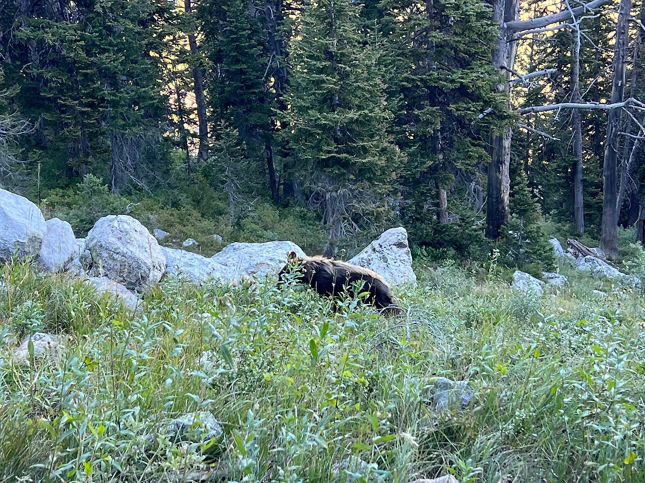 무릎이 아파도 쉬지 않고 걷는데 트레일 왼쪽 수풀 사이로 검은 동물을 봤다. 풀 속에 고개를 넣고 천천히 걷고 있었다. 나한테는 관심도 없는지 고개를 흔들며 풀 속에서 뭔가를 찾는 듯이 걷고 있었다.