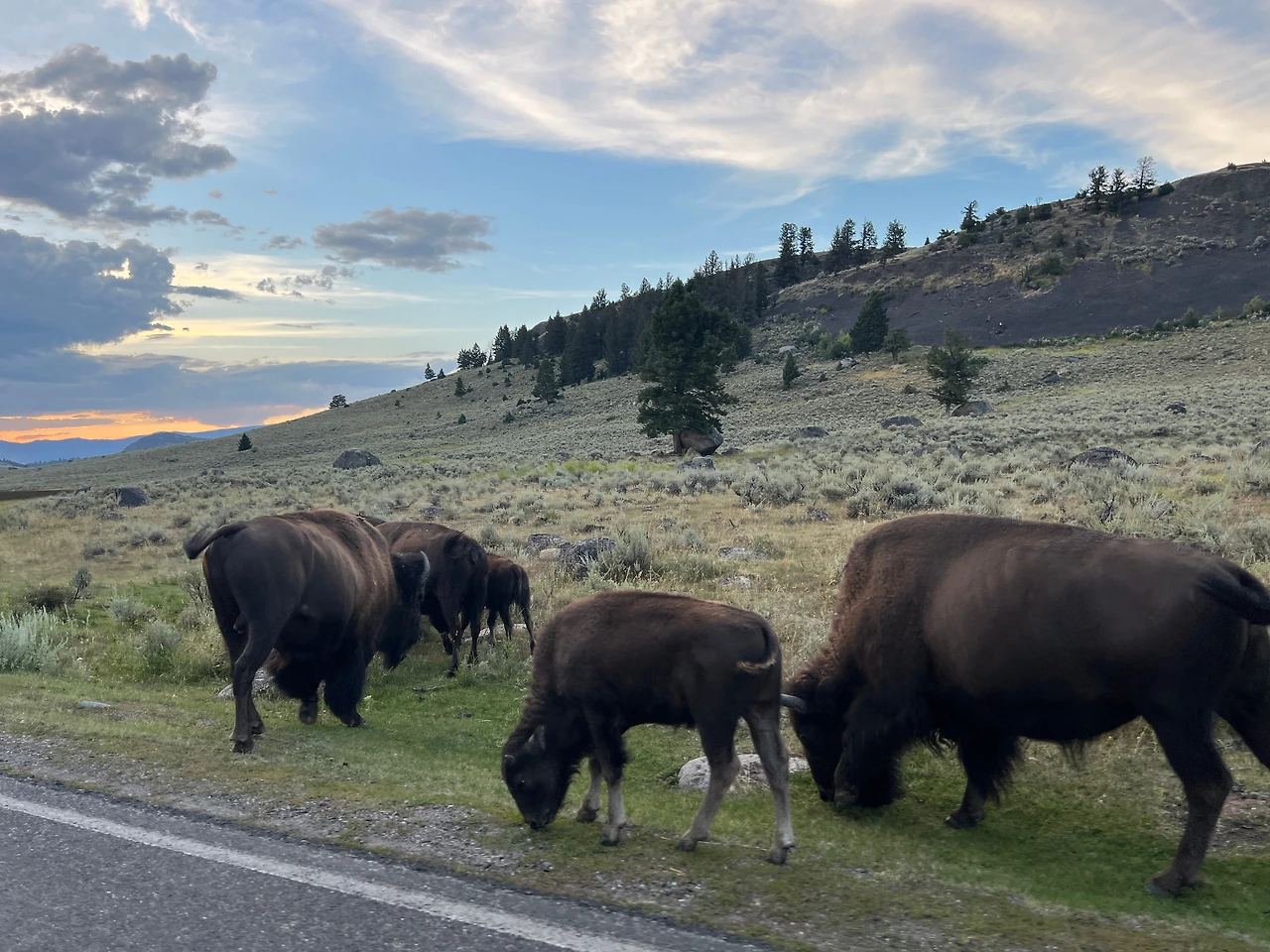 그런데 정말 많았다. 축산업을 하는 이모집에 소가 100마리 넘게 있는데 이모집에 있는 소떼를 몇 십 배 풀어놓은 것처럼. 처음에는 바이슨을 보고 신기해서 사진을 찍었는데 나중에는 '또 바이슨이야?'하고 지겨워할 만큼.