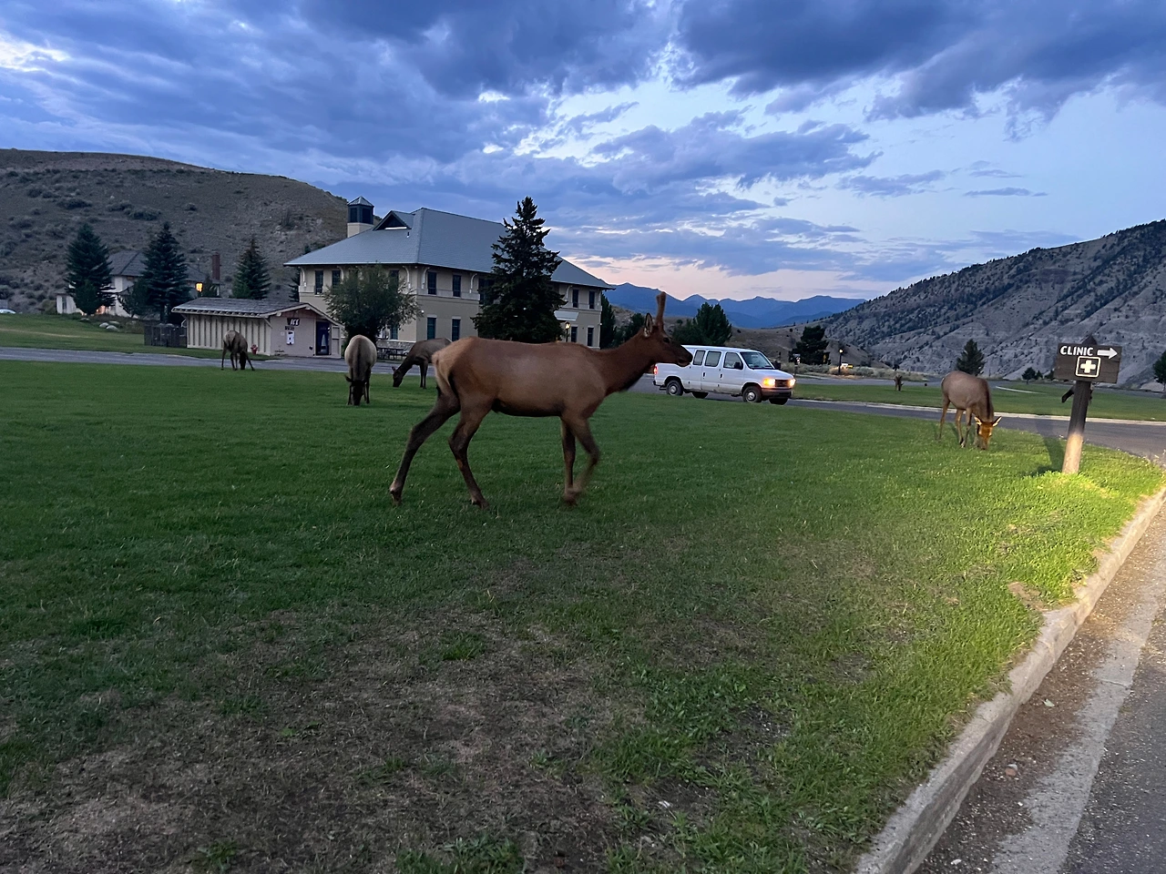 그런데 숙소에 가려고 옐로스톤 북문 가까이 오니 엘크가 풀을 뜯고 있었다.
