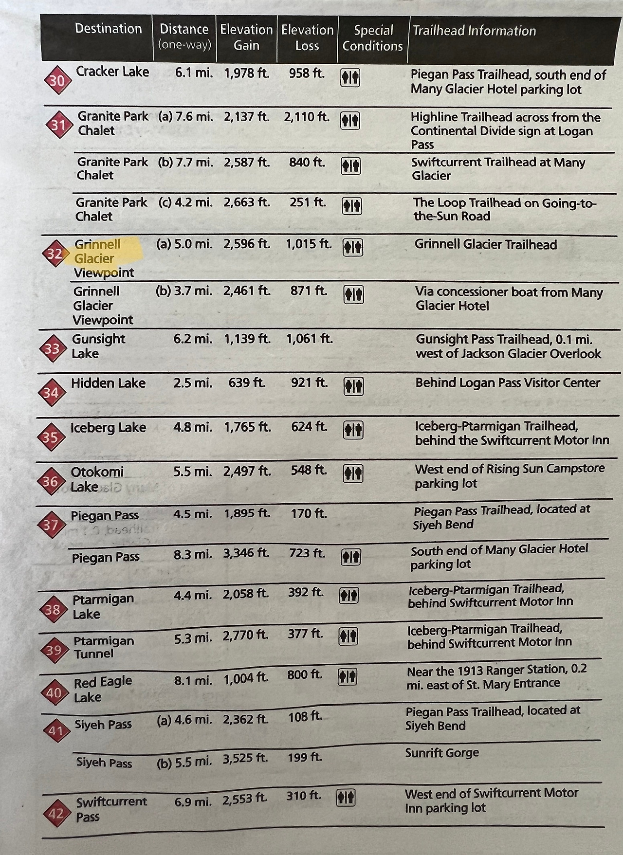 그리넬 트레일 해드는 두 곳이다. 하나는 그리넬 트레일 해드고, 하나는 메니 글래이셔 호텔이다. 메니 글래이셔 호텔에는 보트가 있는데, 이 보트를 미리 예약해서 타면 하이킹을 12킬로미터 정도만 하면 된다.