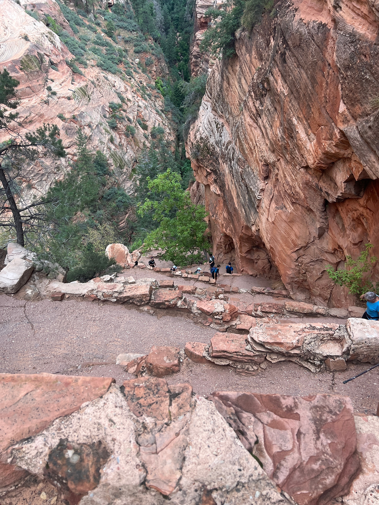 딸이랑 앉아서 오레오를 먹는데 다람쥐가 오레오를 덮칠 것처럼 알짱거렸다. 사람들은 우리를 스쳐 정상으로 올라갔다. 사람들은 우리를 지나쳐 앤젤스 랜딩으로 향했다. 겁이 나서 엉거주춤 걸으면서도 친구나 연인의 응원과 격려 속에 한 걸음씩.