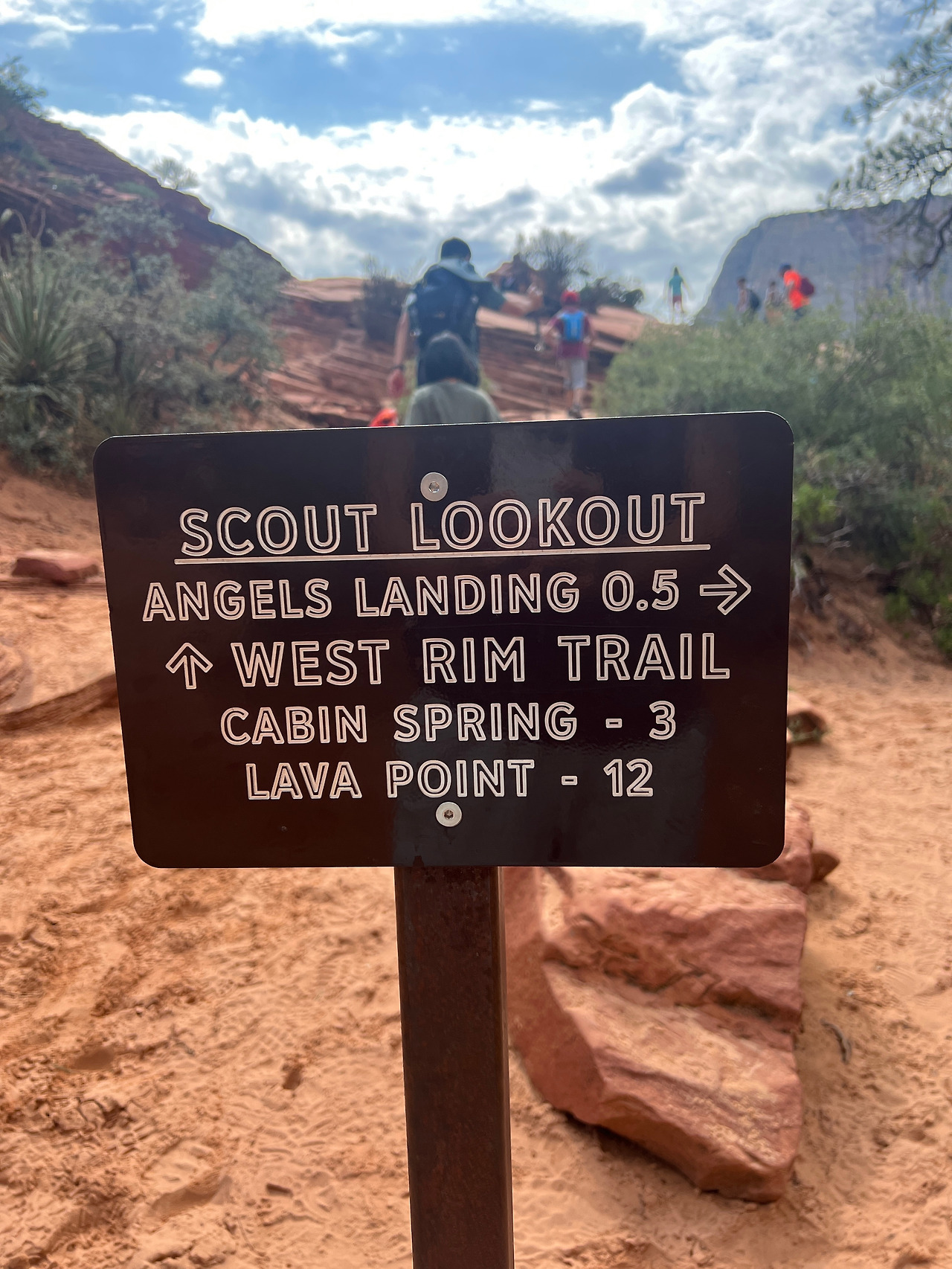 엔젤스 랜딩은 추첨권을 넣을 때부터 오전 9시 이전에 갈 것인지 오전 9시 이후에 갈 것인지 선택해야 한다. 우리는 9시 이후를 선택했다. 비지팅 센터에 주차하고 The Grotto에 내려 산 입구에 도착하니 9시 반이었다. 우리는 나름 서두른 건데 다들 도대체 얼마나 일찍 일어난 건지 하이킹을 마치고 내려오는 사람들이 산을 오르는 사람보다 많았다.