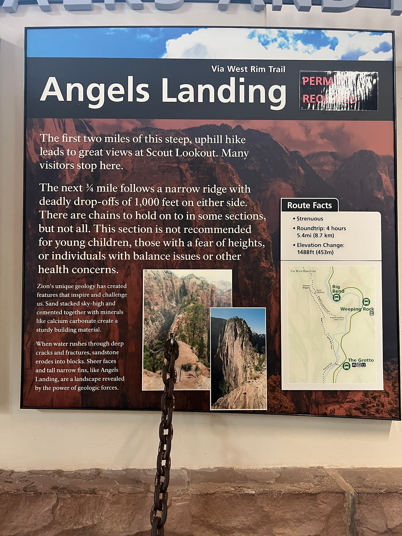 하지만 우리는 앤젤스 랜딩 당첨자다. 얼마나 위험한지 구경이라도 해보자 싶었다.