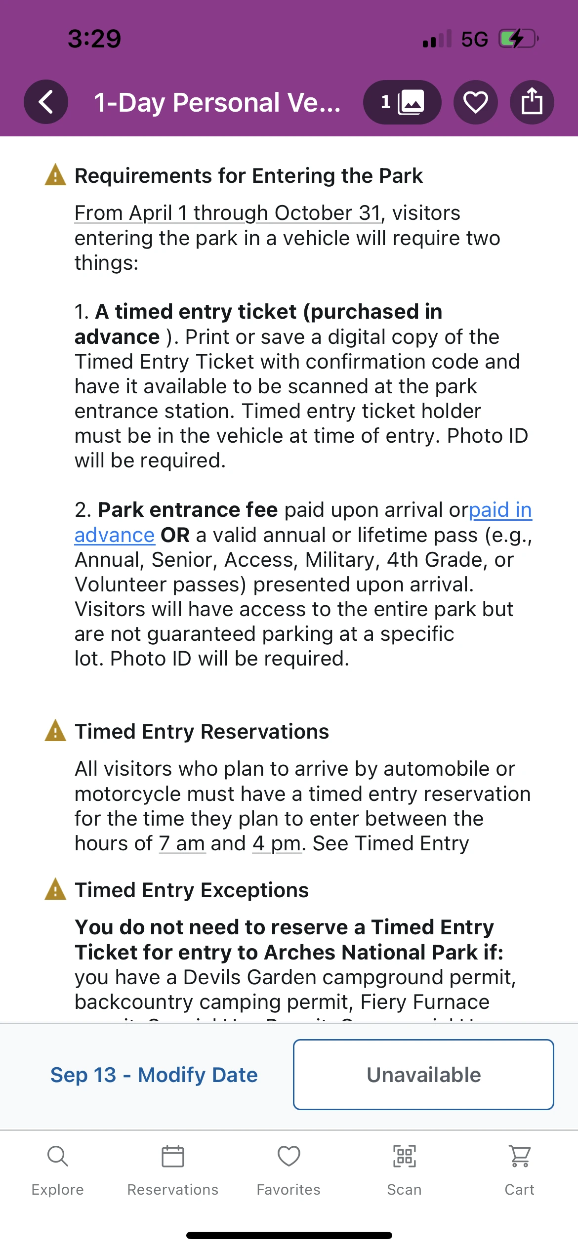 아처스 국립공원에 입장하는 것도 예약이 필요하다. 4월 1일부터 10월 31일까지 아처스 국립공원에 입장하려면 한 달 전에 미리 입장권을 구매해야 한다. 한 달전에 예약하지 못했어도 일주일 전이나 하루 전에도 구매 가능하다. 입장권은 하루에 2달러. 국립공원 입장료와는 다른 입장권으로 입장할 시간을 선택해서 입장하는, 어떻게 보면 길 이용료라고 볼 수 있는 티켓이다. 길이 편도인 데다 주차장도 적은 편이라 이런 제도가 생긴 것 같다.