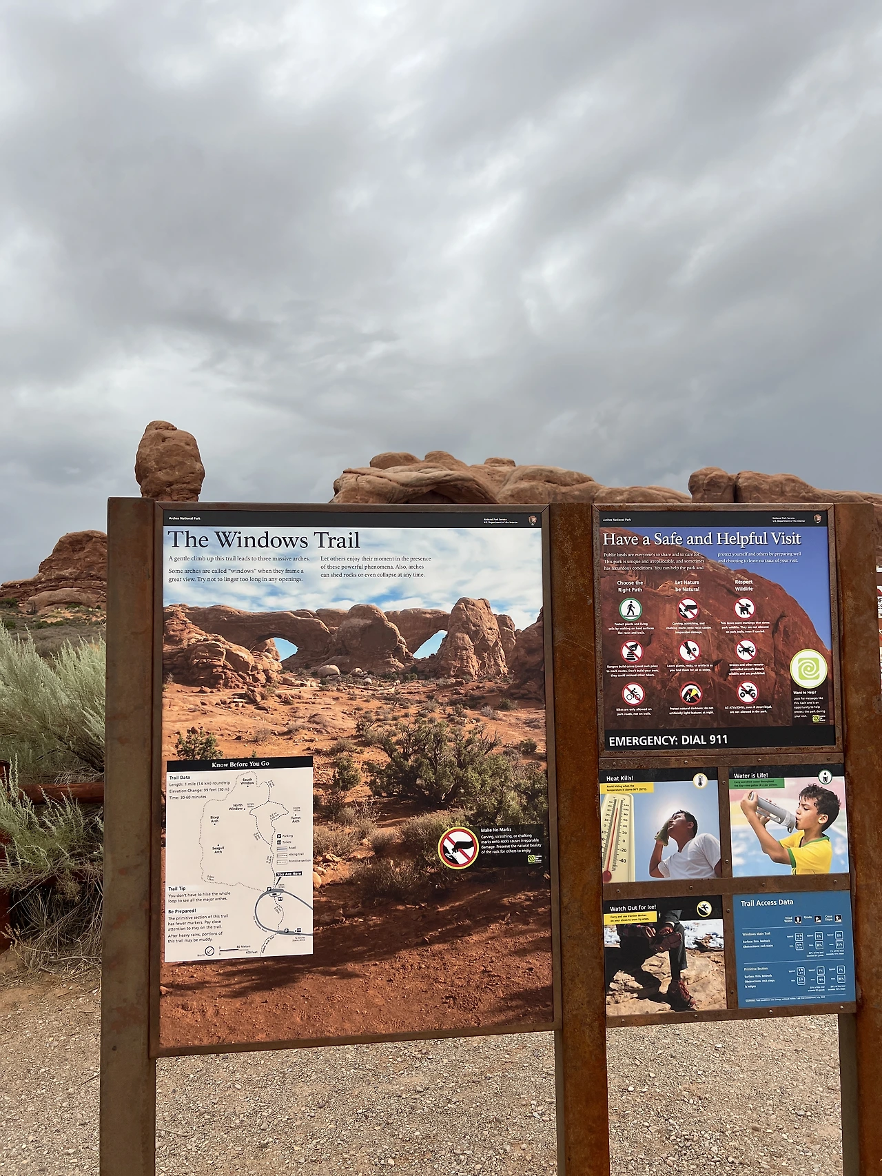 윈도 아치는 주차장에서 왕복 1.6km의 완만한 길을 걸으면 도착할 수 있기 때문에 저녁에 오르기 부담스럽지 않았고 여차 비가 많이 쏟아진다고 해도 주차장까지 금방 도착할 수 있었기 때문이었다.