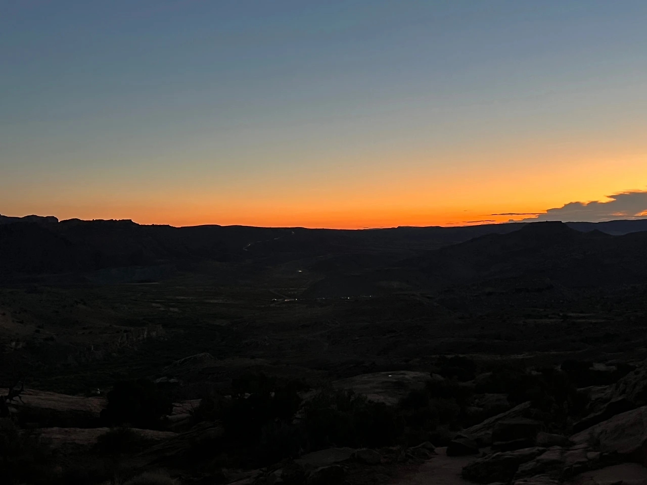 해가 캐년 뒤로 넘어가고 사람들도 하나 둘 자리를 떴다. 8시 20분. 해도 거의 저물어서 이제 아치를 내려가기로 했다. 걷는 중에 해가 점점 넘어갔다. 달빛이 이렇게 밝았던가? 키 큰 나무가 없는 곳이라 달빛이 발걸음을 지켜줬다.