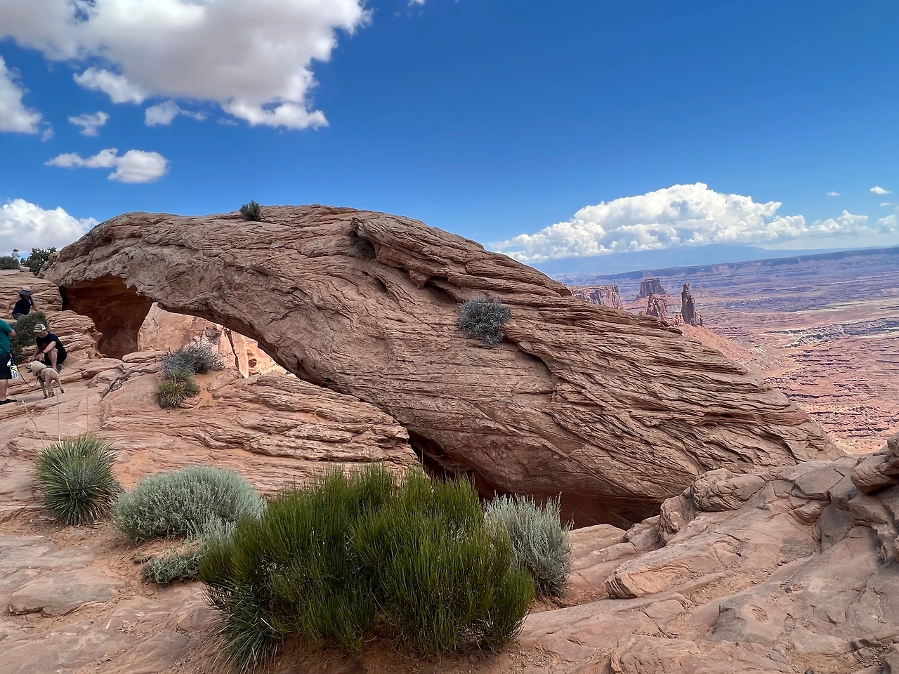 여기서 명당은 땅과 아치 사이에서 뜨는 해를 볼 수 있는 자리다. 메사 아치는 나지막해서 아치 앞에서 몸을 낮추고 봐야 그 틈 사이로 뜨는 해를 볼 수 있다.