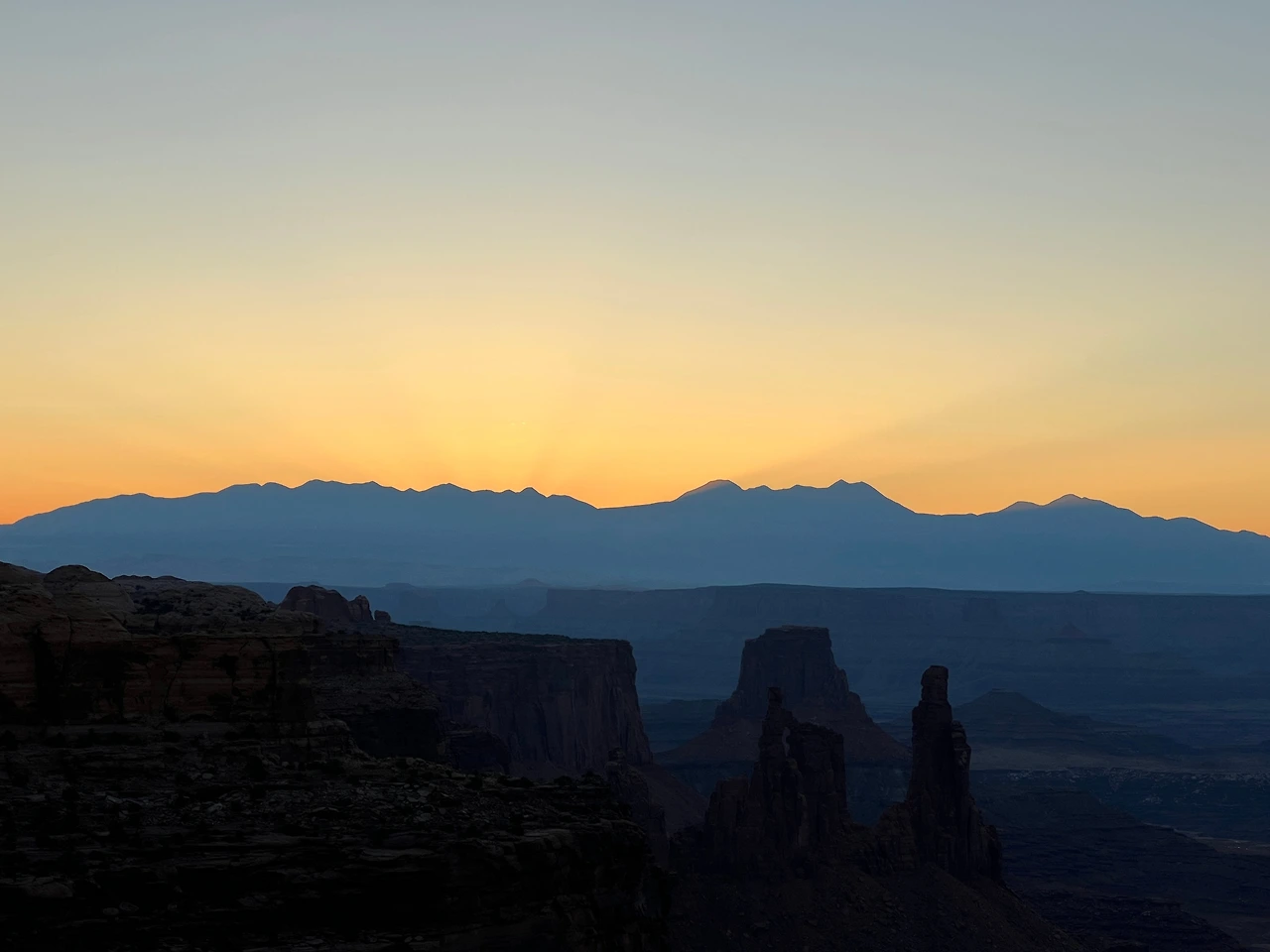 숙소에서 메사아치까지는 50킬로미터가 조금 넘어서 서둘러야 했다. 8월 말, 그날 일출 시간은 6시 42분이라고 한다. 우리는 해돋이만 보고 다시 숙소에 들어갈 생각으로 옷만 대충 걸쳐 입었다. 오가는 데두 시간 정도걸리고 그날은 캐년랜드를 둘러보기로 해서 숙소에 들어가면 두 번 왕복을 해야 하지만 하루치 준비를 다 하려면 시간이 많이 걸리니까.
