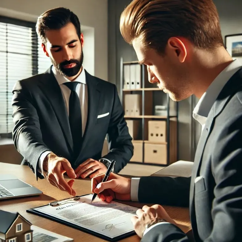그와 집주인은 웃으며 서로 악수 하고 한부씩 계약서를 나눴다. 그는 가벼운 마음으로 부동산을 나왔다.