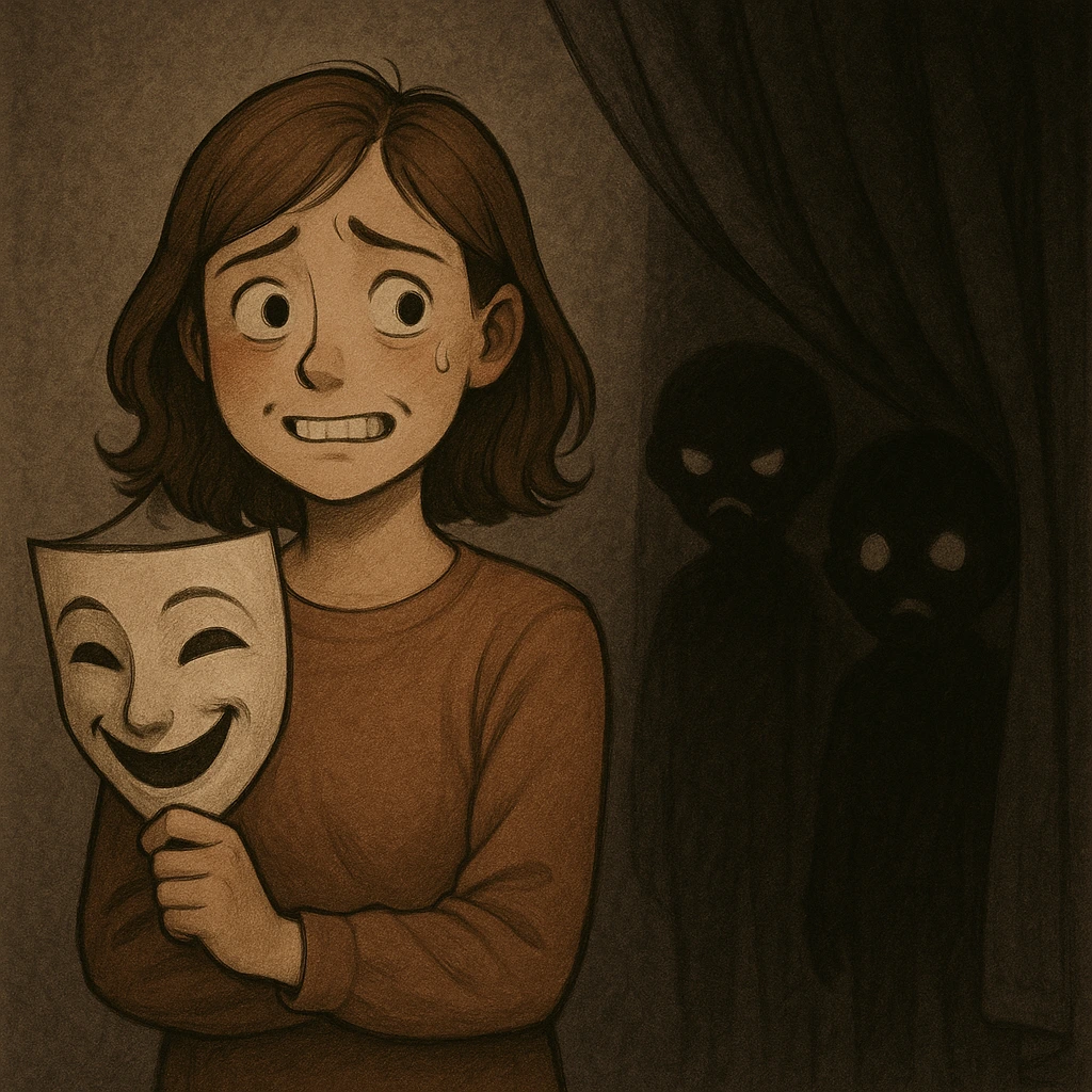 미소와 싹싹함이란 가면 속에 떨고 있는 내 쫀녀, 소심쟁이처럼 마음속에 두려움이란 커튼뒤 어둠의 아이들이 있으리라.