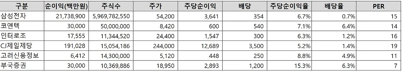 인기가 있을 확률이 있는 회사는 삼성전자와 CJ제일제당뿐인 것 같아요. 코앤텍(폐기물 처리회사), 인터로조(1회용 콘택트렌즈 회사), 고려신용정보(채권추심회사), 부국증권(채권투자를 주로 하는 작은 증권사) 모두 좋은 회사지만 인기가 있을 확률은 거의 없죠.
