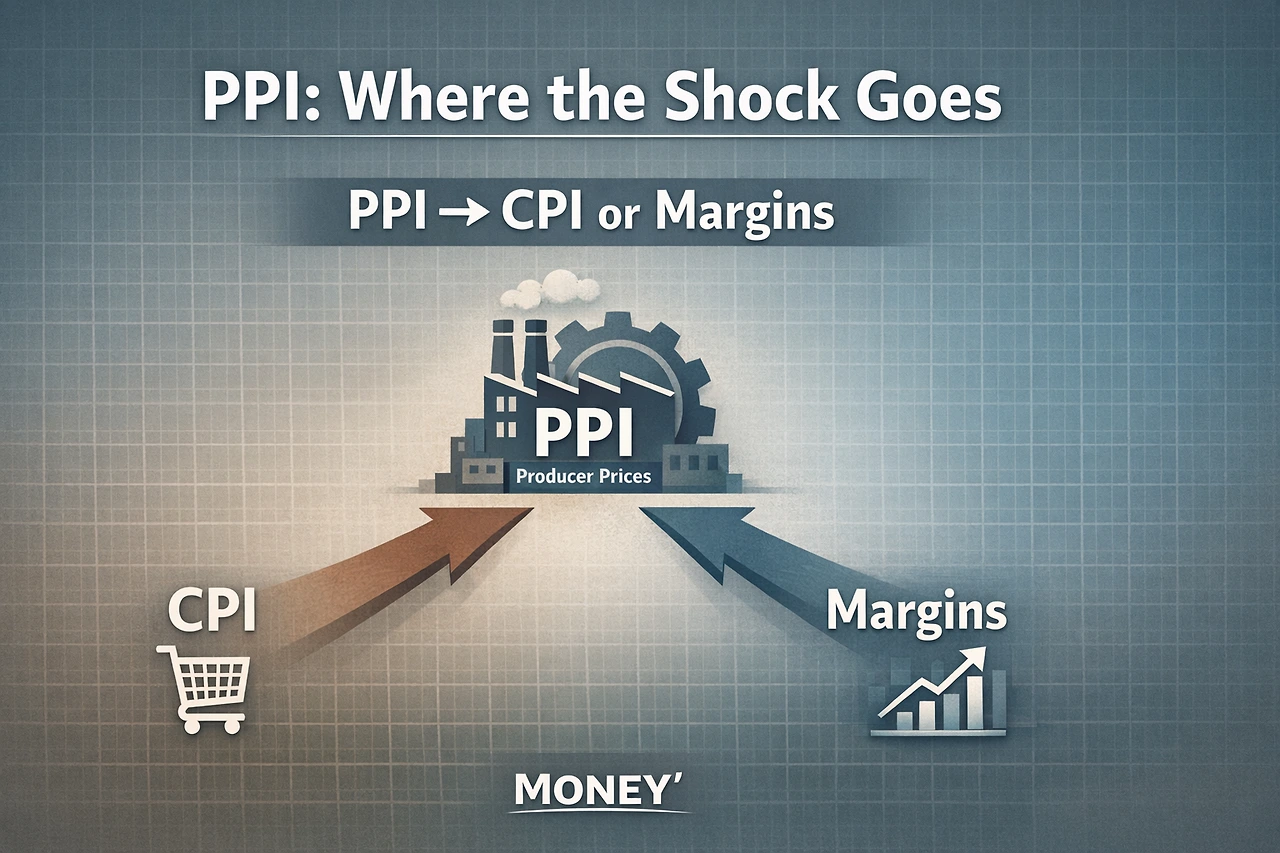 > PPI는 ‘물가 예측’ 지표가 아니라, 충격이 “CPI로 갈지(소비자 전가)” 아니면 “기업 이익으로 갈지(마진 압박)”를 가르는 지표다.