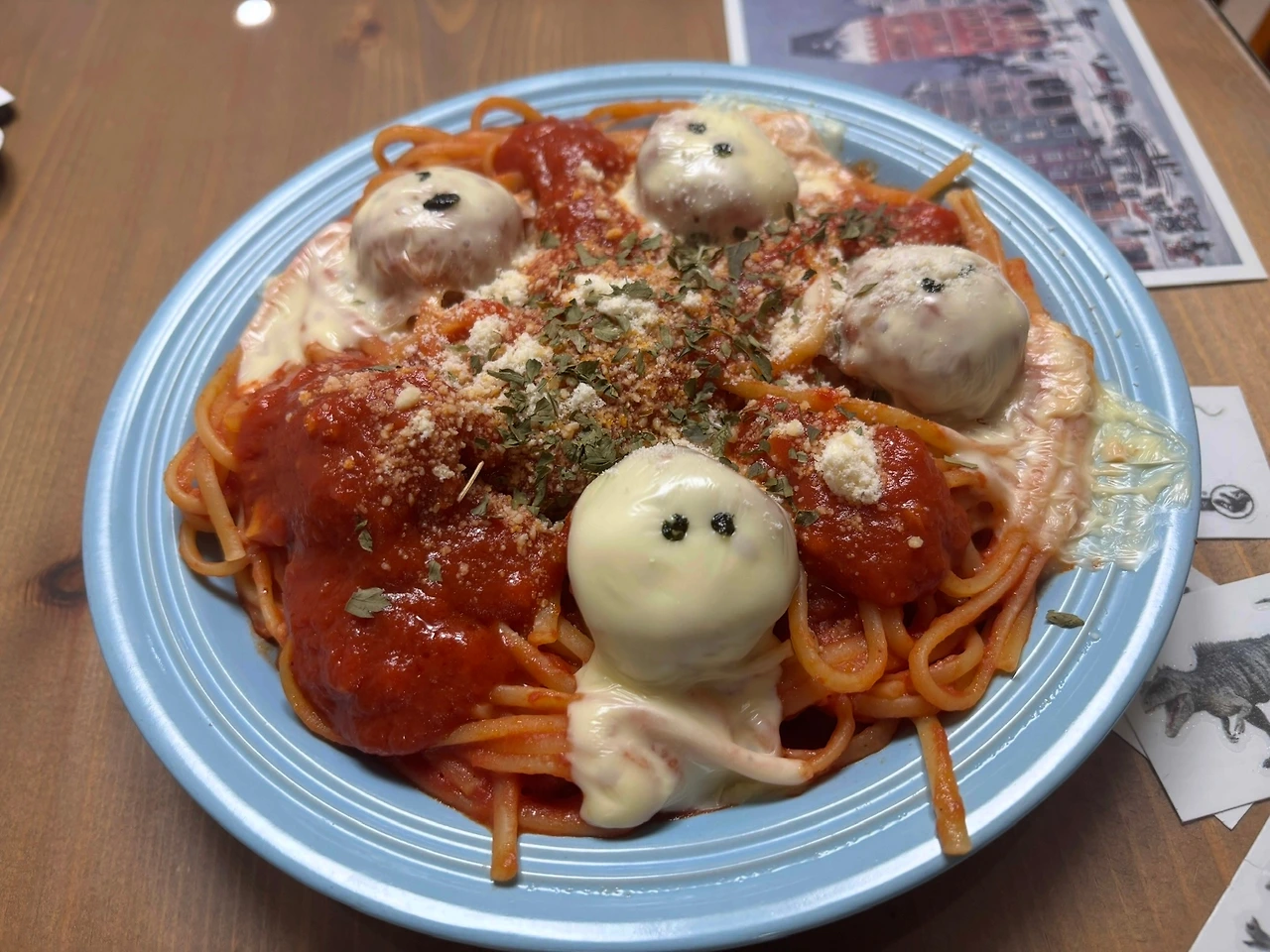 그 위에 김으로 눈 모양 만들어 붙여줍니다.