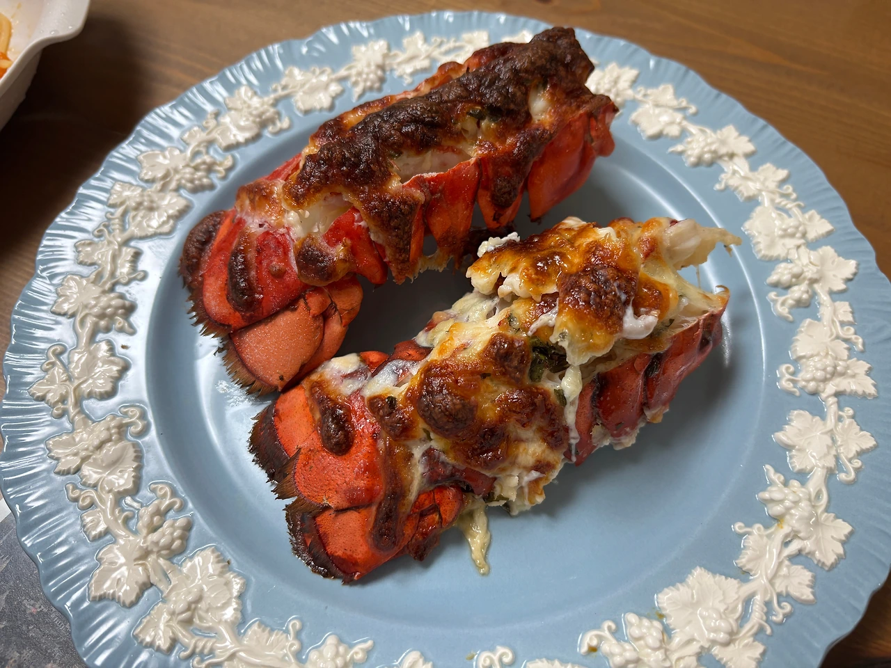 랍스터는 등껍질 자른 후 속살 위에