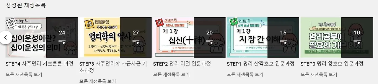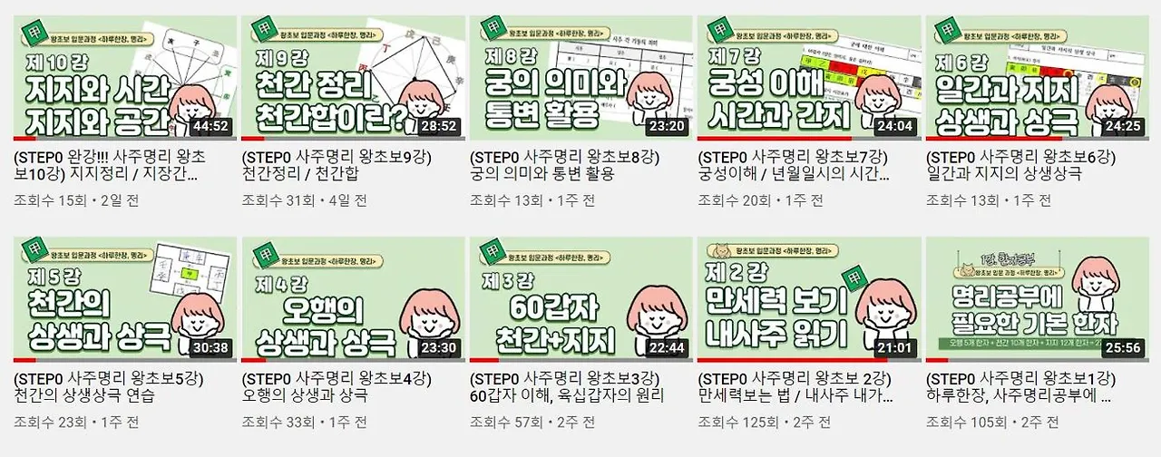 STEP0에서는 기본 한자 익히기부터 시작하여 음양과 오행, 10 천간과 12 지지, 궁에 대하여 간단하게 공부하게 된다. 어쩌면 STEP0와 STEP1이 가장 기본이면서 핵심을 다루는 강의일 것이다. STEP2에서는 십신에 대해 익히고 그 특성에 관하여 공부할 수 있다. STEP3에서는 명리학의 역사부터 조금 더 깊이 있는 내용들을 다루었으며, 격에 대하여 공부할 수 있다. STEP4는 십이운성에 관하여 정리하고 있다.