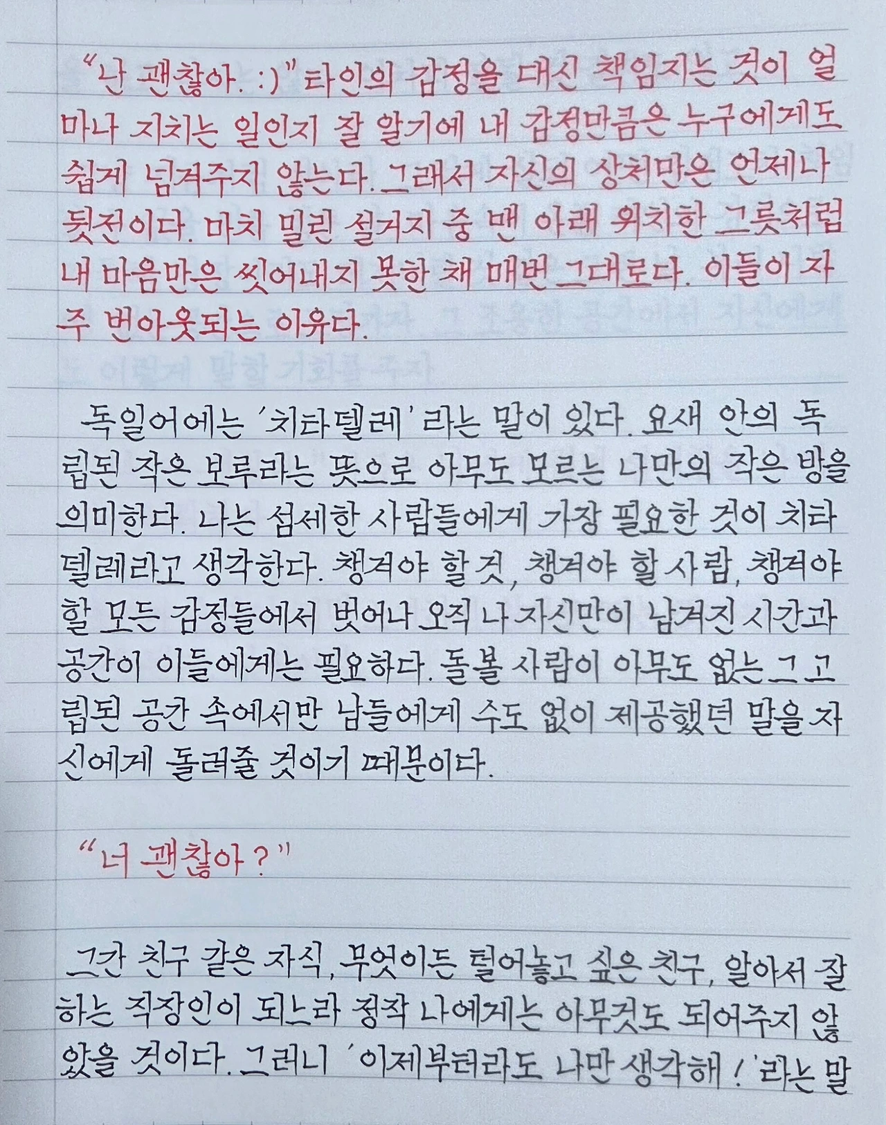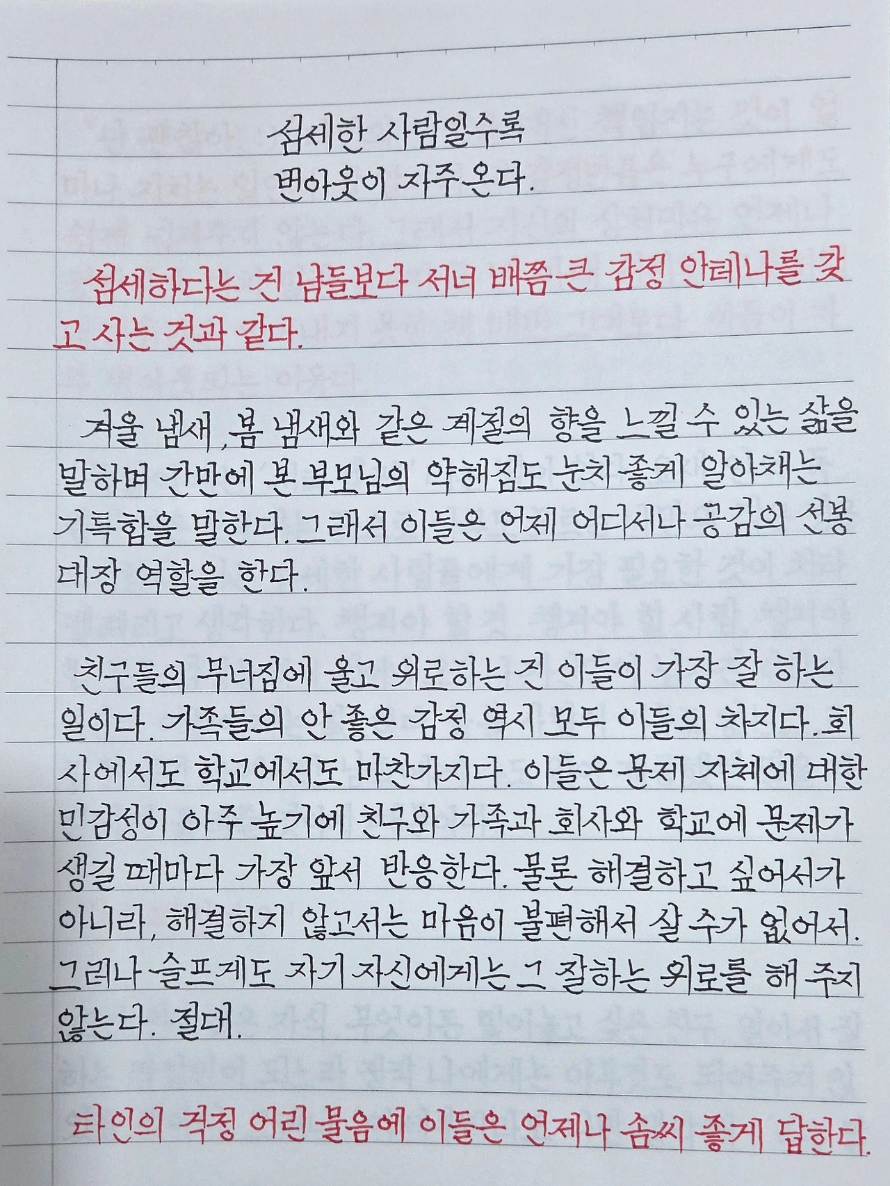 마치 타임머신을 타고 20년 전의 내 마음속을 들여다보고 와서 쓴 글만 같았다.