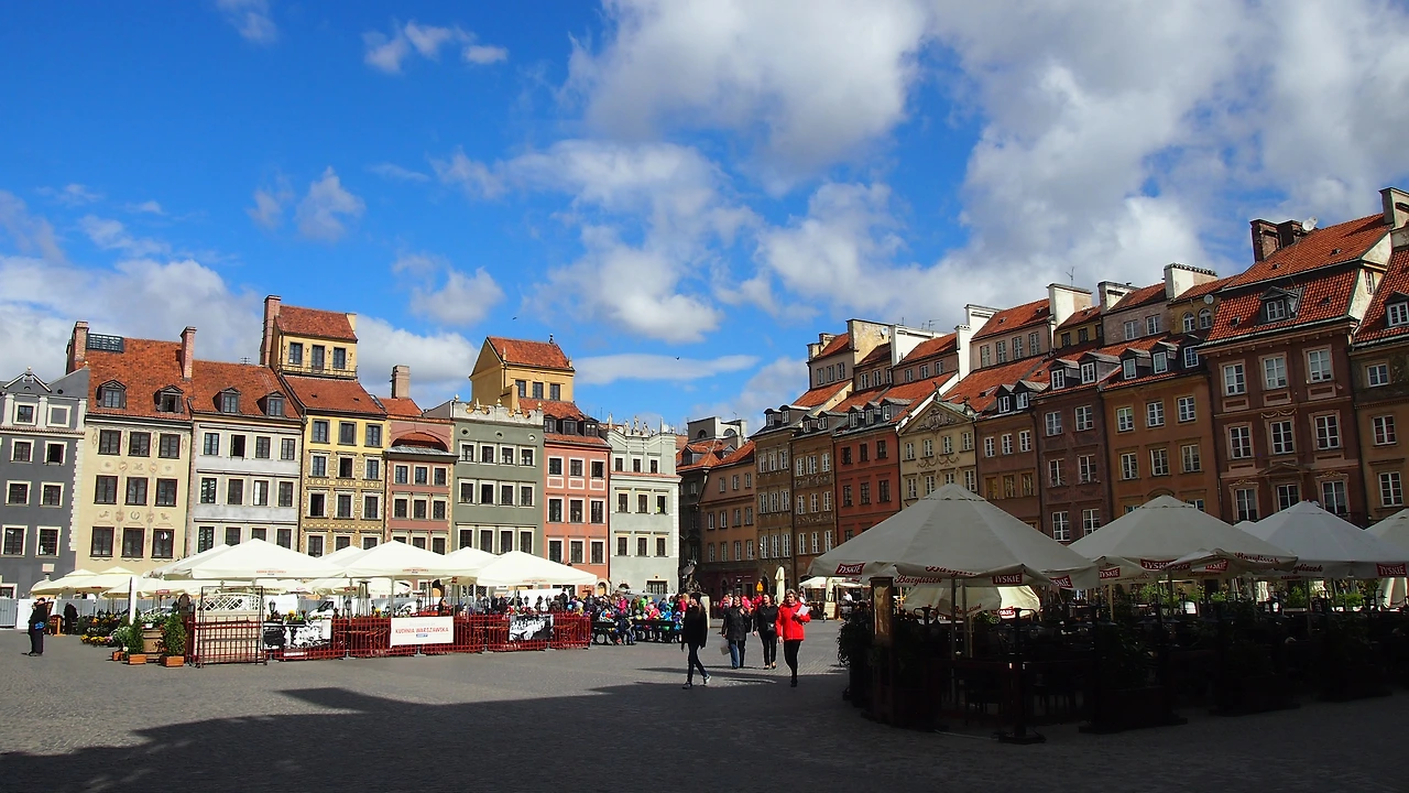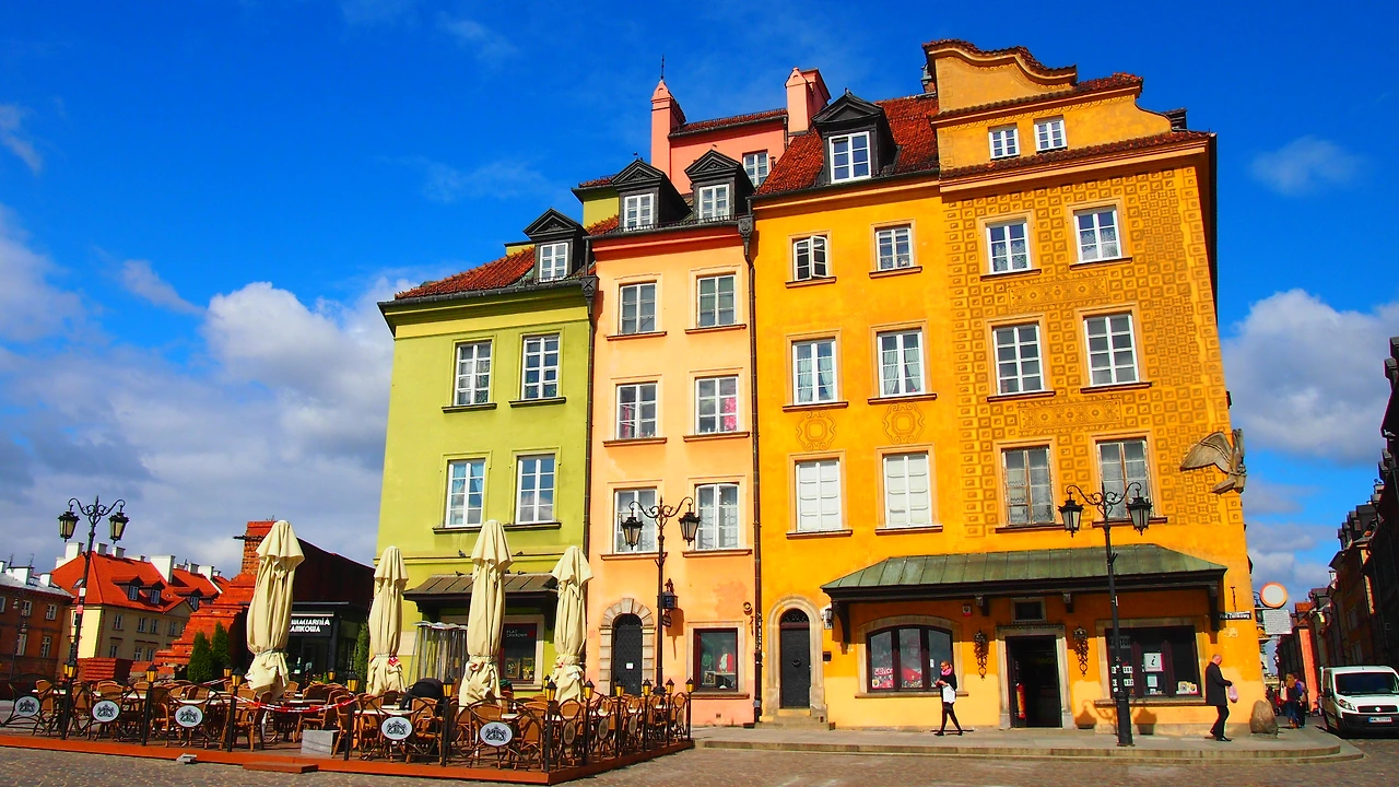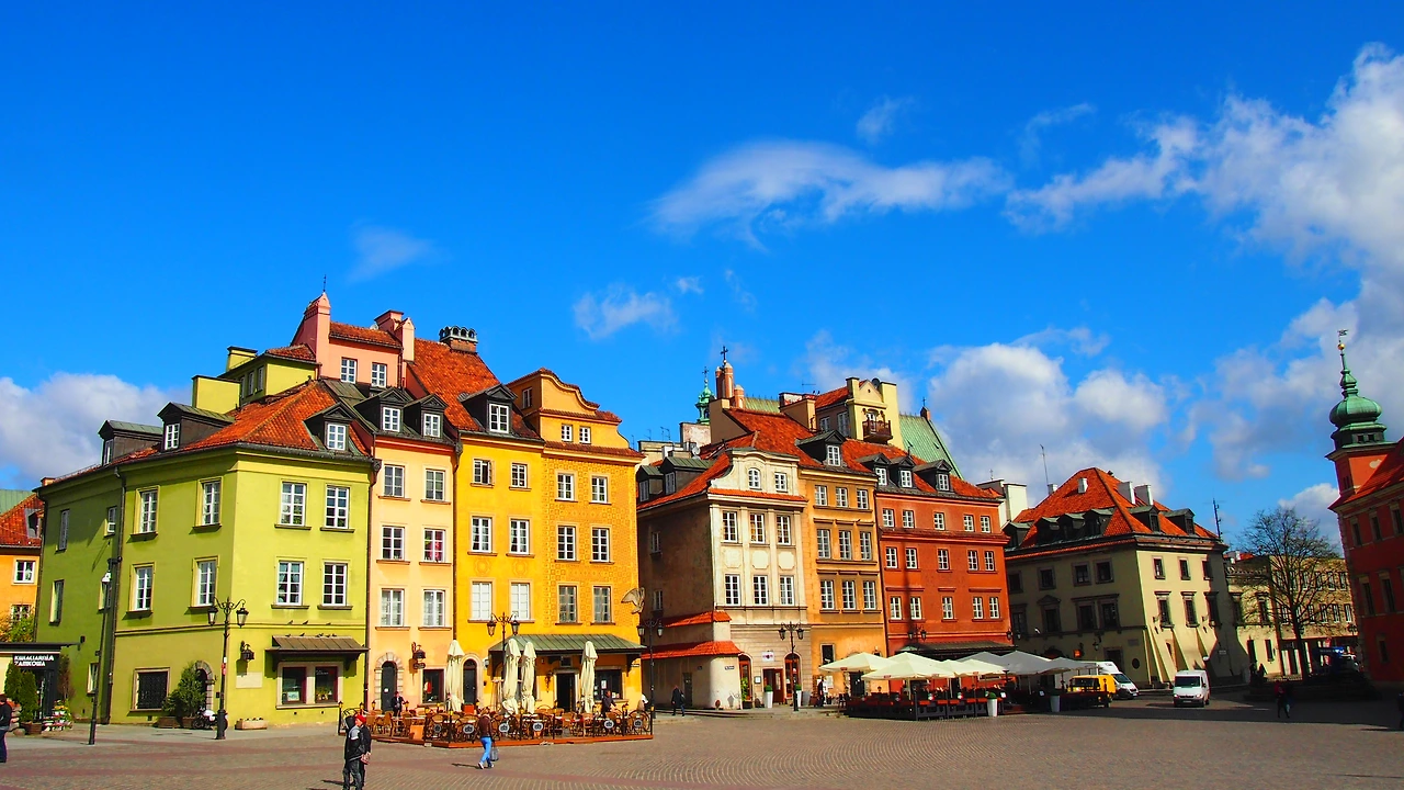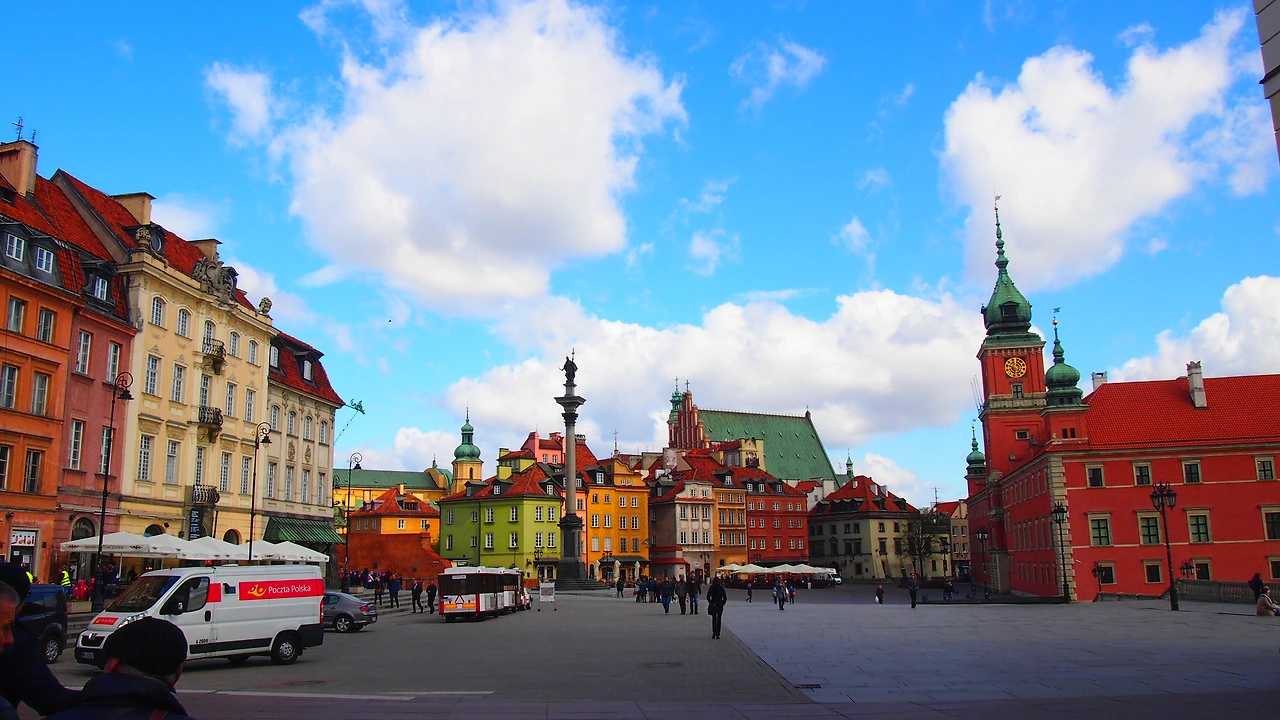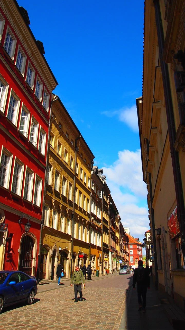 잠코비 광장에서 서있으니 동화 속에 들어와 있는 것만 같았다. 부드럽고 다양한 색을 가진 건물들이 아기자기한 장난감 같았기 때문이다. 우리나라에 높은 빌딩 숲에서 지내다 낮은 건물들을 보고 있으니 더욱 장난감같이 느껴졌을지도 모른다. 건물이 낮으니 하늘까지 눈에 들어왔다. 푸른 하늘과 하얀 구름이 기분을 좋게 만들어주었지만, 4월 바르샤바의 날씨는 제법 쌀쌀했다.