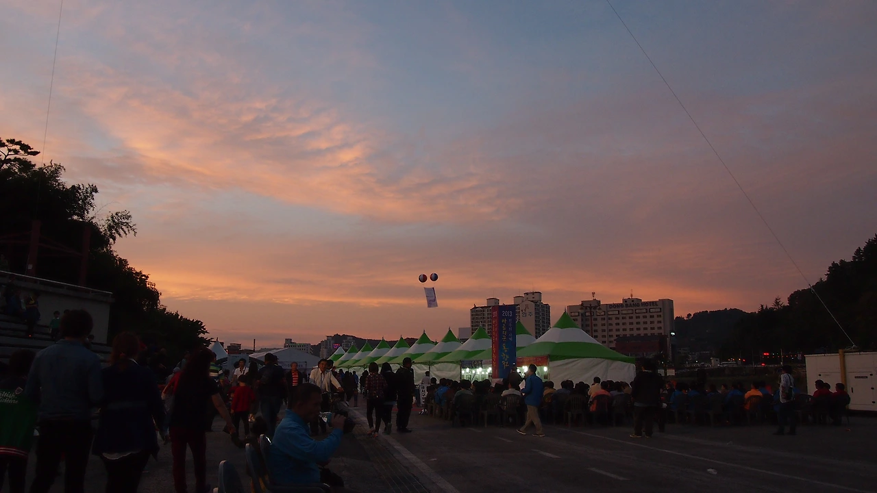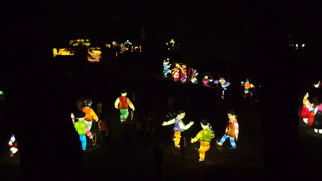 밤의 불빛은 왜 그렇게 화려하게 느껴지는 것일까? 어둠을 밝혀주는 것이 빛의 역할인데 그 이상의 것을 하는 것만 같다. 보고 있는 것만으로도 설렘을 주고 즐거움을 주기 때문이다. 등에 자신들의 소원을 적어 하늘로 띄우기도 하고, 걸어놓기도 한다. 그것이 하나의 관광 상품으로 자리 잡은 도시도 있고. 진주에서는 사전에 신청을 받아 등을 써서 올리는 행사를 했었다. 그것이 하나의 전시공간으로 구성되었고, 사람들은 그 안에서 사진을 찍으며 즐거운 시간을 보내고 있었다.
