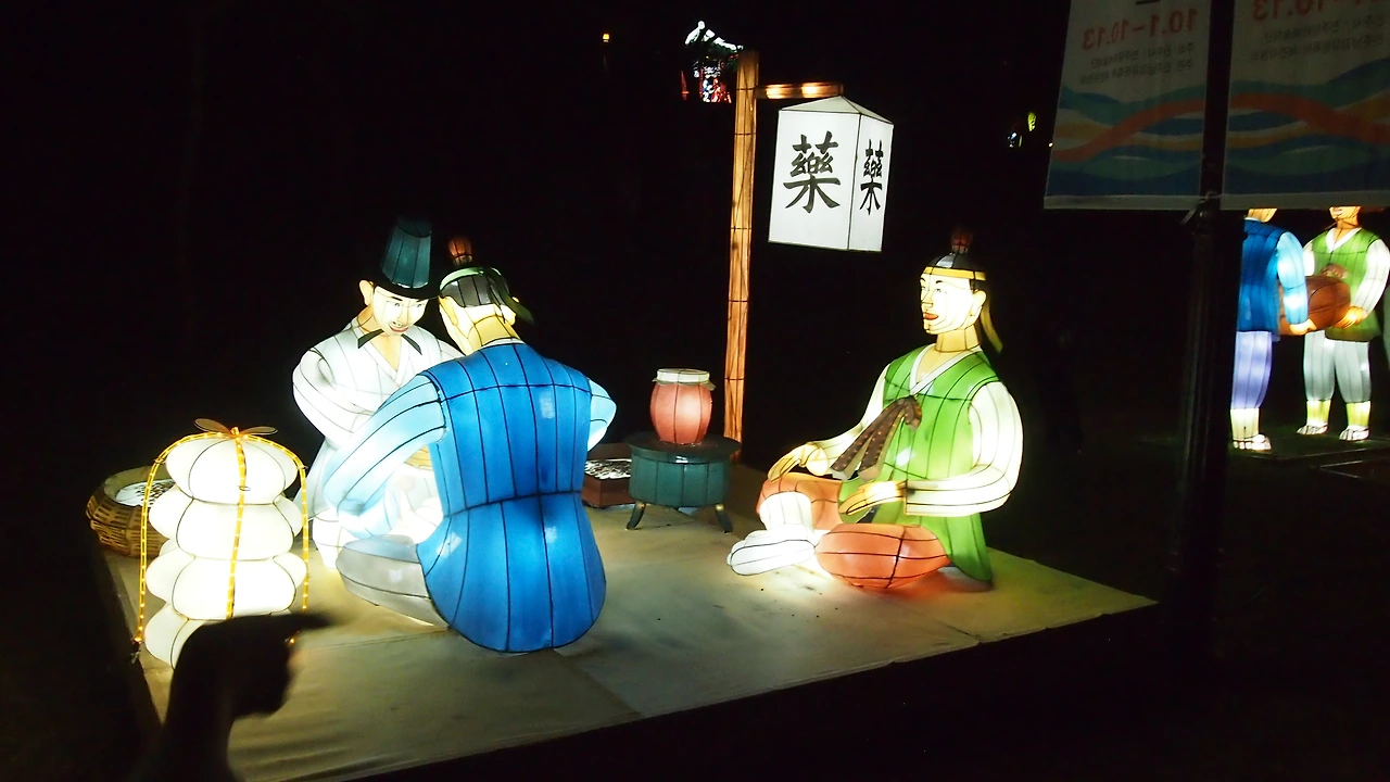 강 한 편에는 역사적인 내용이 담긴 등이 있었다. 알에서 나왔다는 박혁거세의 신화부터 임진왜란 당시의 치열했던 전투를 알려주는 내용의 유등도 빠지지 않았다. 용을 비롯하여 유니콘, 백호 등 어린이들이 좋아할 만한 등도 많이 있었다. 지상에 세워진 등에는 역시나 어린이들이 빙 둘러싸고 있었다. 다 큰 내가 봐도 예쁜데 어린아이의 눈에는 얼마나 예쁘게 보였을까, 싶어 사진은 잠시 양보했다.