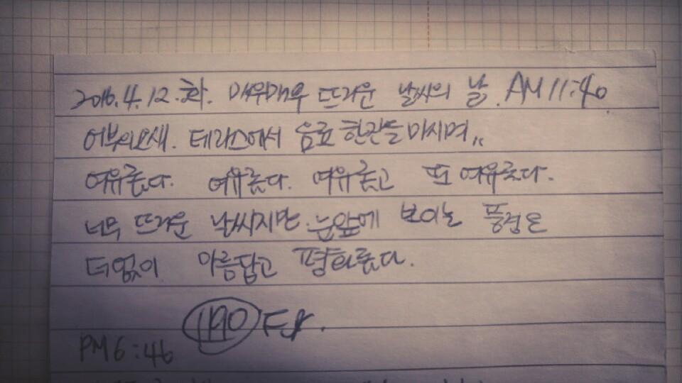 상쾌하고 포근한 공기가 코 끝을 스쳐 깊숙이 들어오고 있어