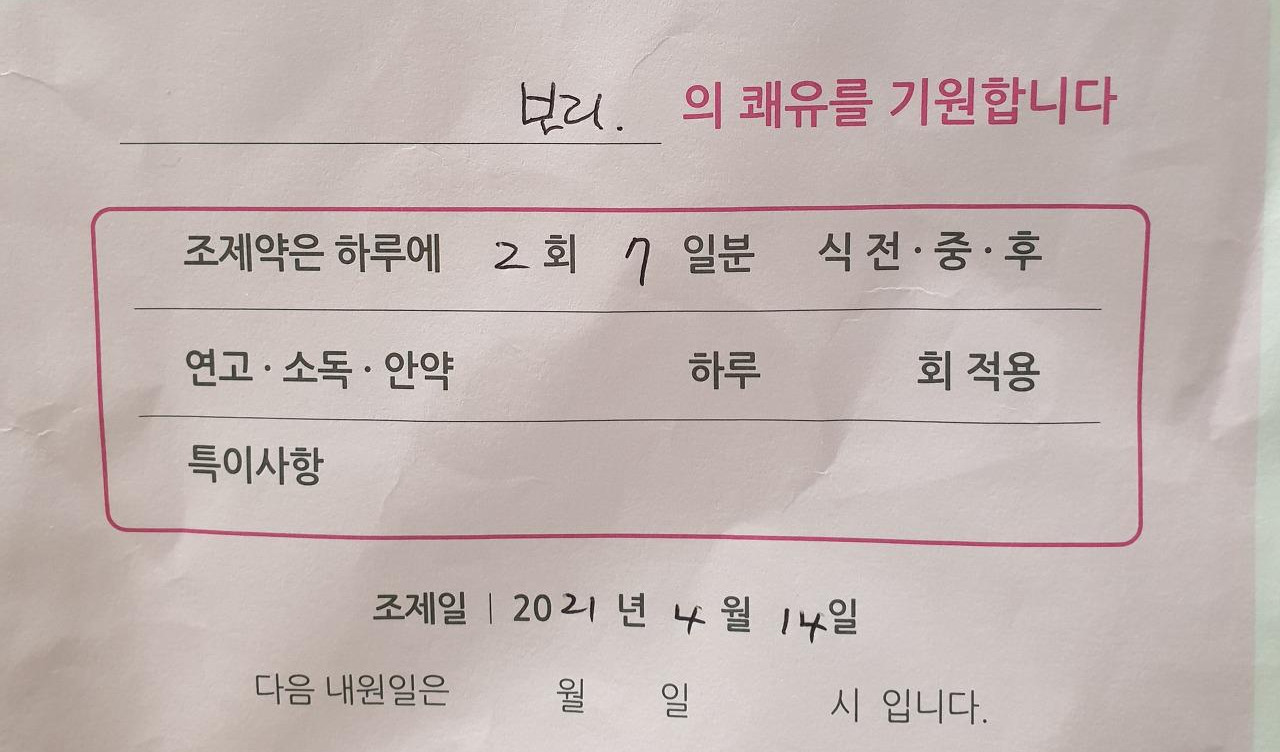 내복약을 받아올 때면 한숨이 절로 나온다. 실패와 성공의 기록들.