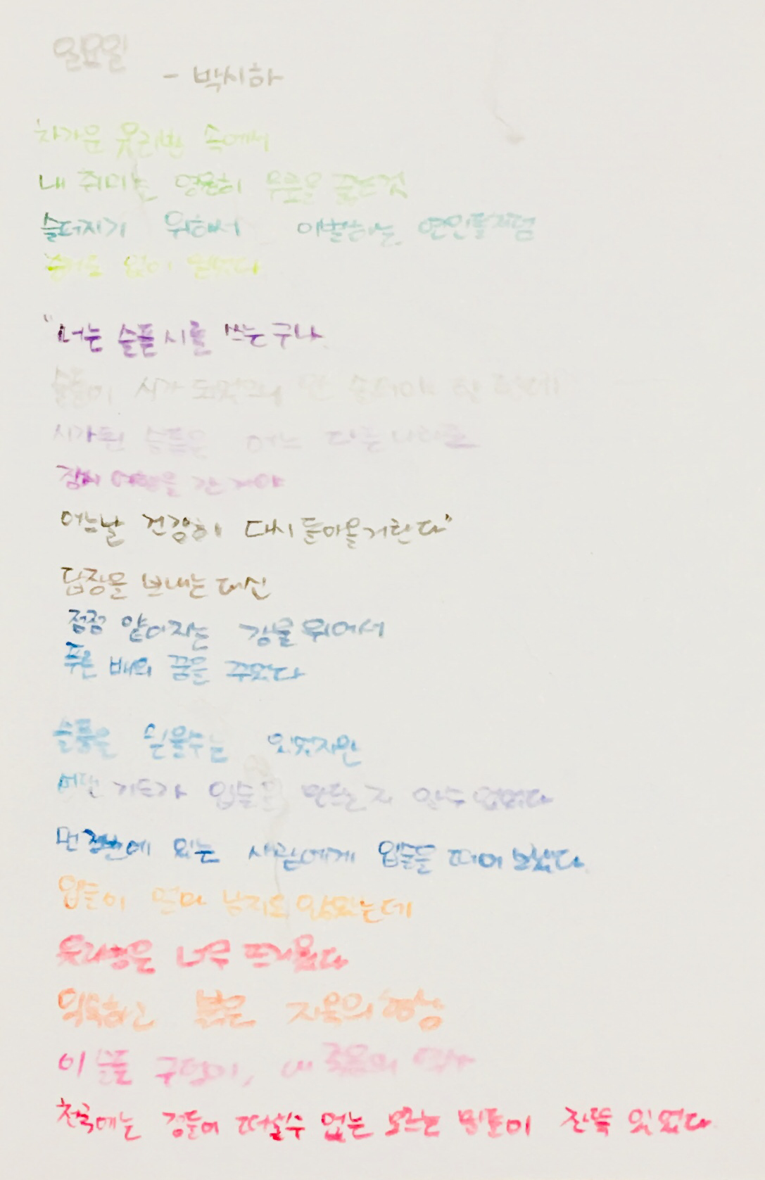슬픔이 시가 되었으니 안 슬퍼야 할 텐데.