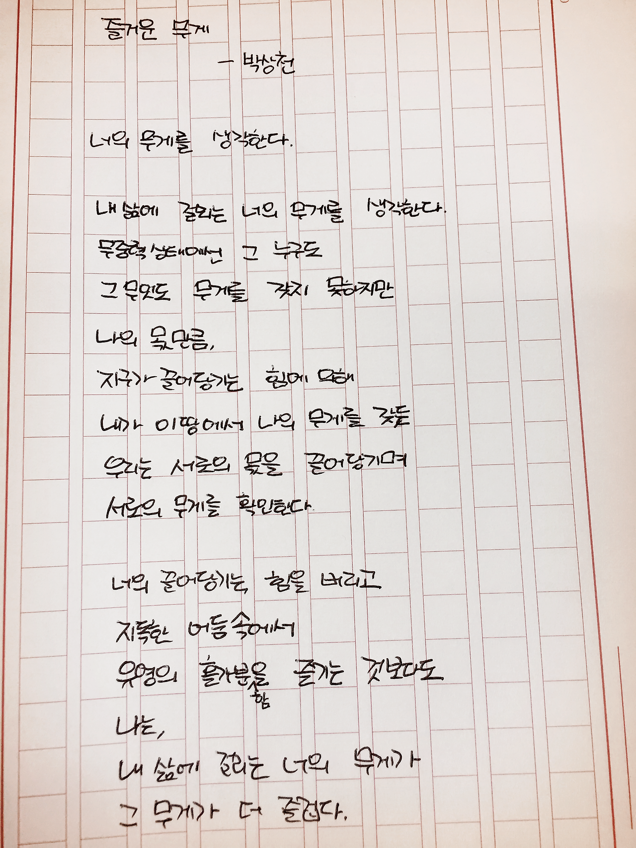 내 삶에 걸리는 너의 무게를 생각한다.