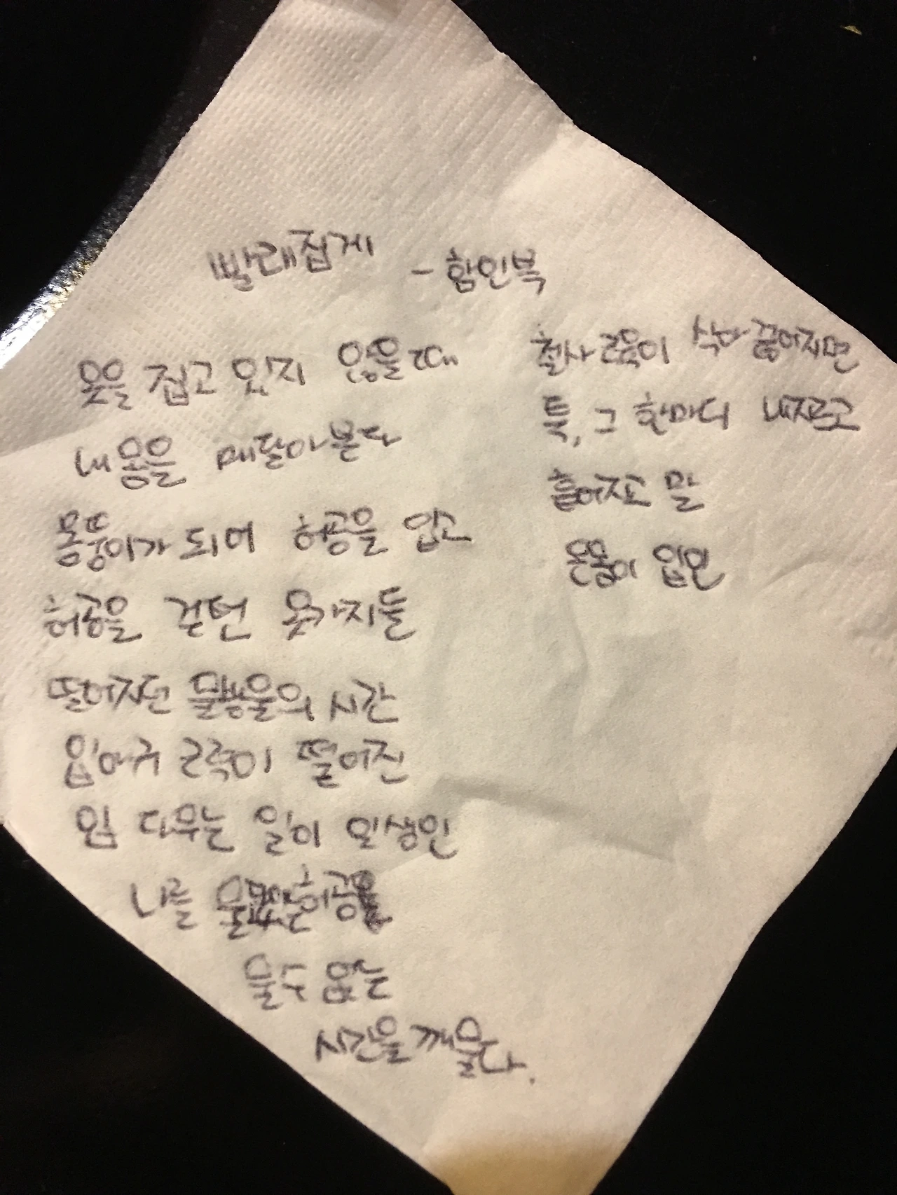 [0826] #087 빨래집게 - 함인복 옷을 집고 있지 않을 때내 몸을 매달아본다몸뚱이가 되어 허공을 입고허공을 걷던 옷가지들떨어지던 물방울의 시간입아귀 근력이 떨어진입 다무는 일이 일생인나를 물고 있는 허공물 수 없는시간을 깨물다철사 근육이 삭아 끊어지면툭, 그 한마디 내지르고훑어지고 말온몸이 입인#1일1시 #100lab
