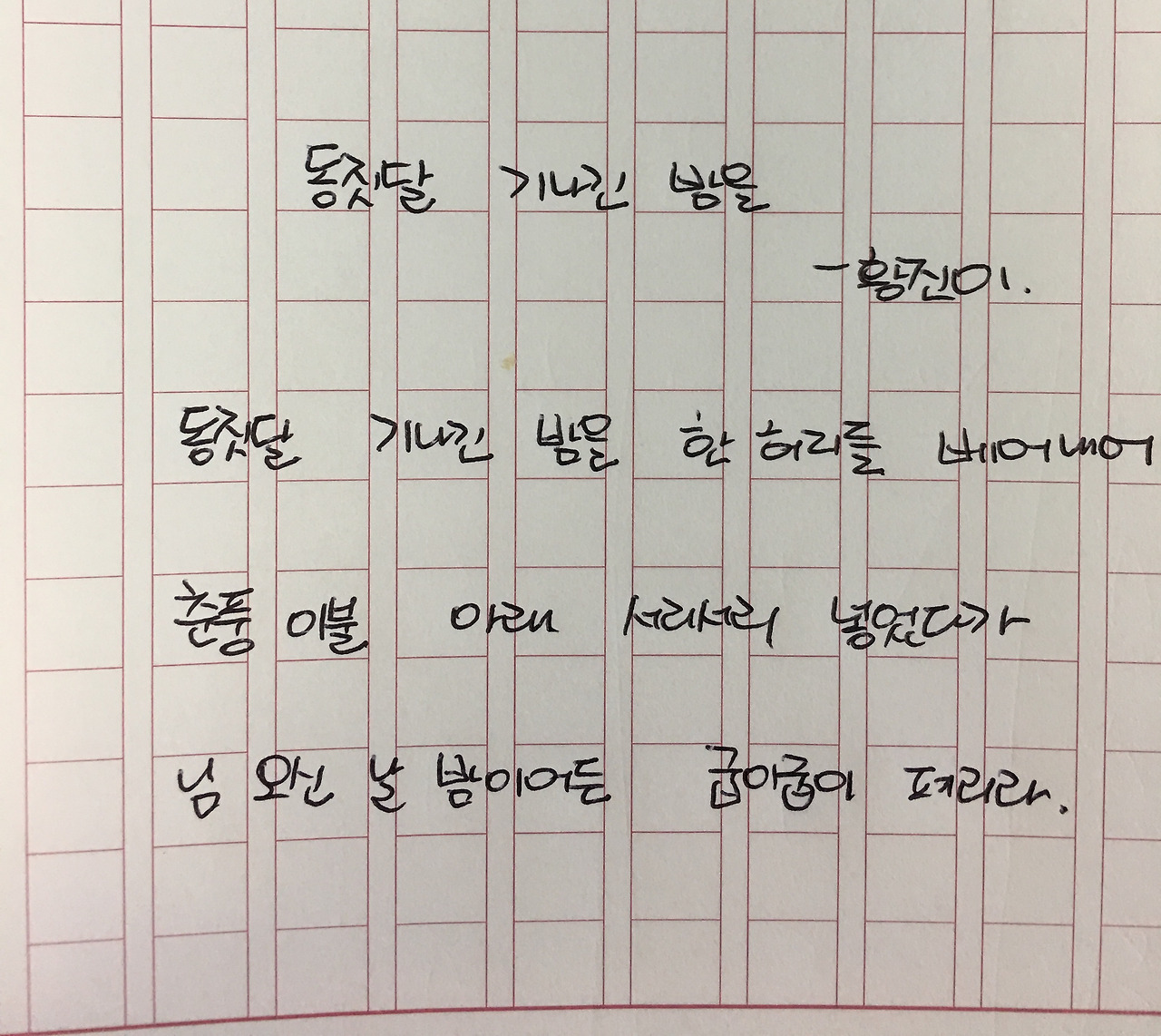 동짓달 기나긴 밤을 - 황진이동짓달 기나긴 밤을 한 허리를 베어내어 춘풍 이불 아래 서리서리 넣었다가 님 오신 날 밤이어든 굽이굽이 펴리라